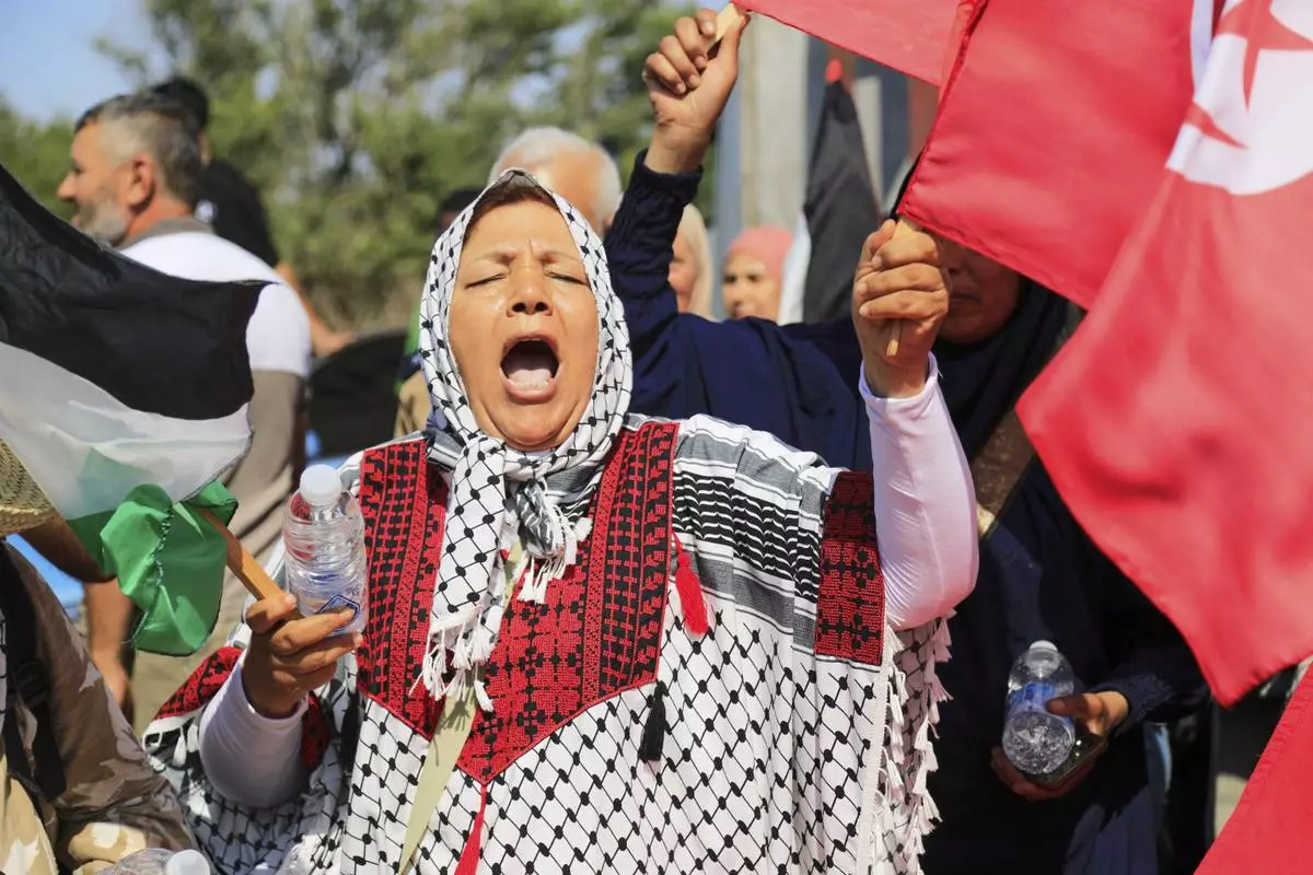Meanwhile, an aid convoy traveling overland from Algeria picked up new participants along the route in Tunisia and Libya but was stopped in the city of Sirte, about 940 kilometers (585 miles) from the Libya-Egypt border.