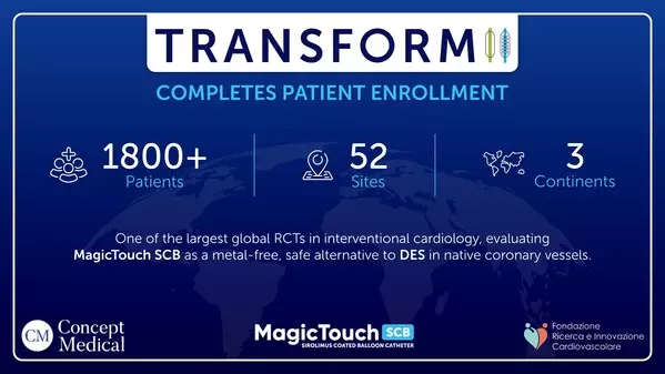 Dr. Manish Doshi, Founder & Managing Director of Concept Medical Group, commented: "The completion of patient enrollment in TRANSFORM II is a significant milestone in our mission to bring innovative drug-delivery technologies to the forefront of interventional cardiology. We are proud to scientifically support one of the largest global randomized trials evaluating sirolimus-coated balloon technology. This achievement reflects our commitment to clinical excellence, scientific rigor, and ultimately, better outcomes for patients around the world."