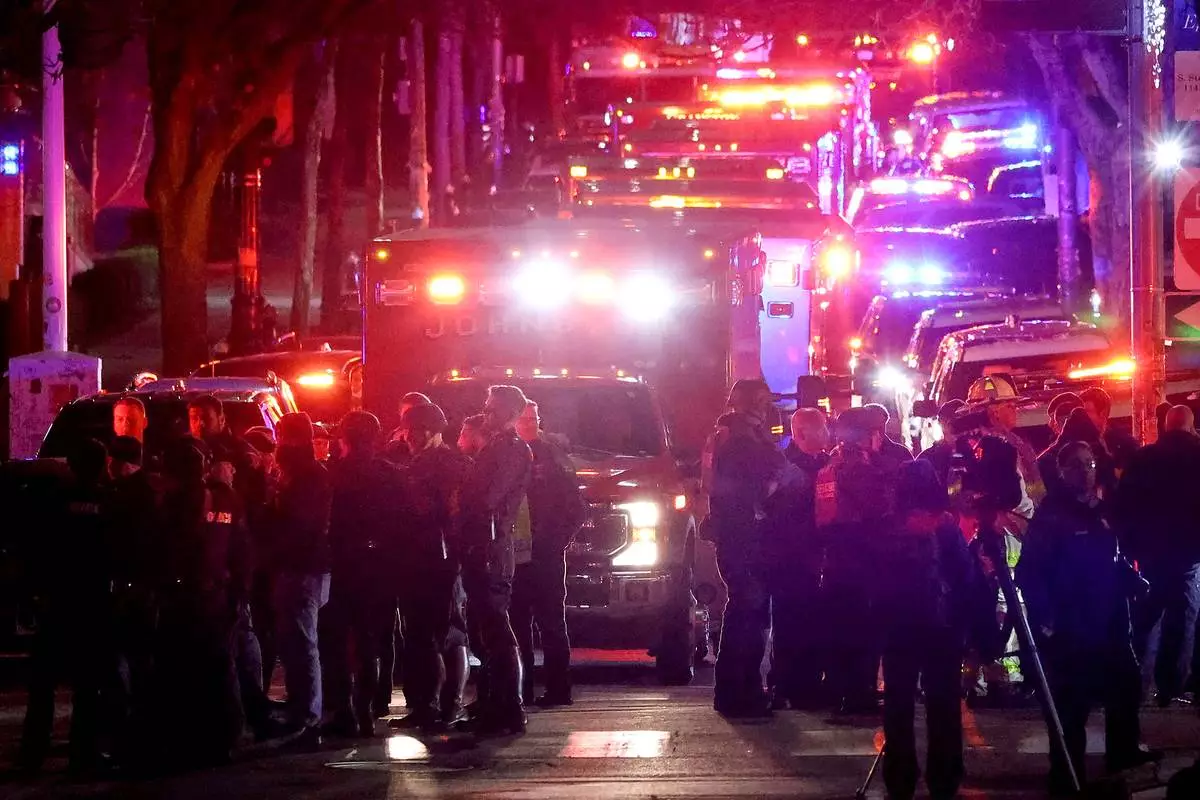 Emergency personnel gather at Hope and Waterman Streets at Brown University in Providence, R.I., Saturday, Dec. 13, 2025, during reports of a shooting. (AP Photo/Mark Stockwell)