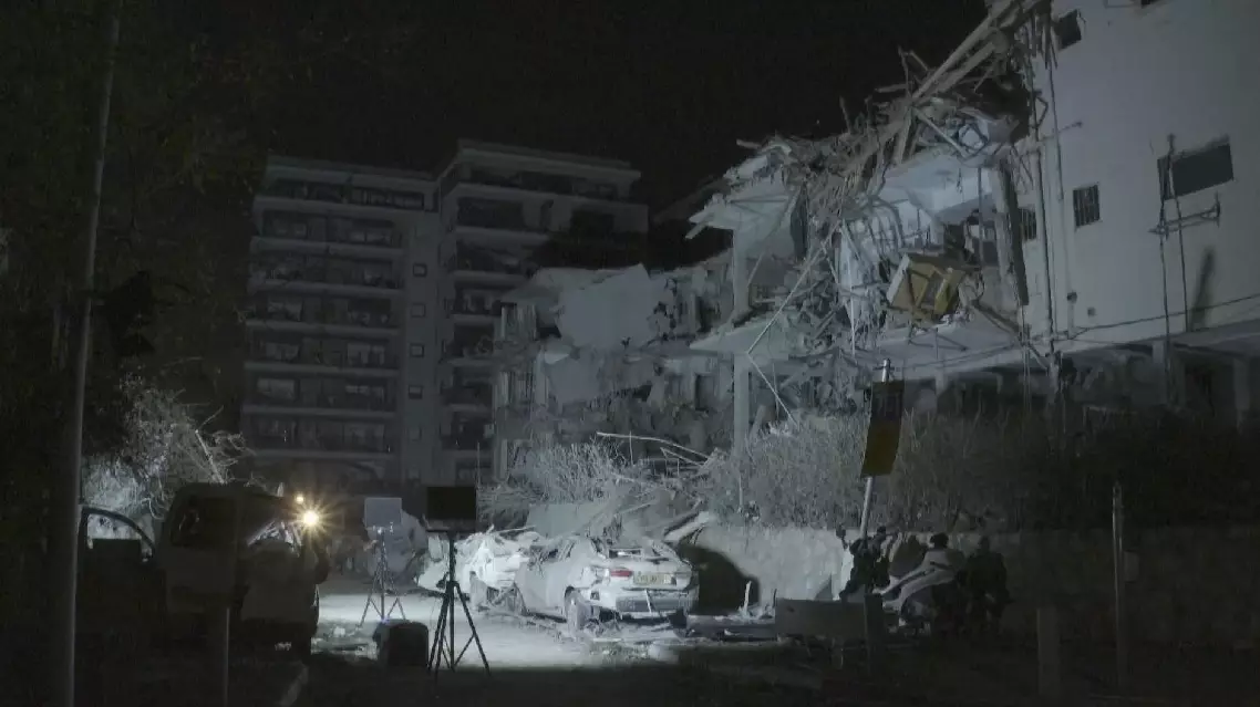 Local police officers were seen working at the sites hit by the strikes on early Saturday morning in Tel Aviv where buildings and vehicles were severely damaged.