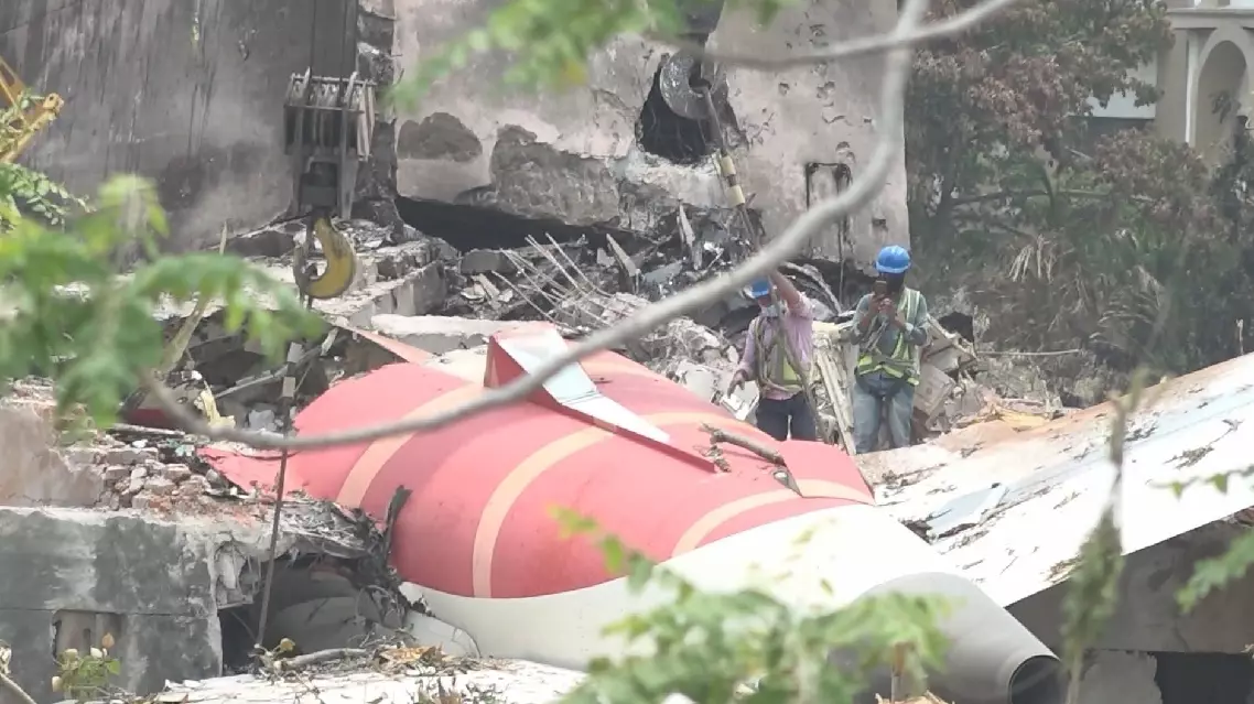 The fuselage of the plane still remained on the top of the buildings at the crash site, where mechanics and laborers are working to ensure that it will be taken out in a way that it can still provide clues to the final moments of AI-171.
