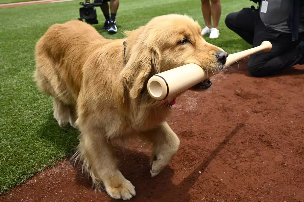 Bruce, a 21-month-old golden retriever, fetched a bat during a ceremony Saturday before the Washington Nationals’ 4-3 loss to the Miami Marlins as part of a Pups in the Park promotion. He retrieved bats the last two seasons with the Rochester Red Wings, Washington’s Triple-A affiliate.