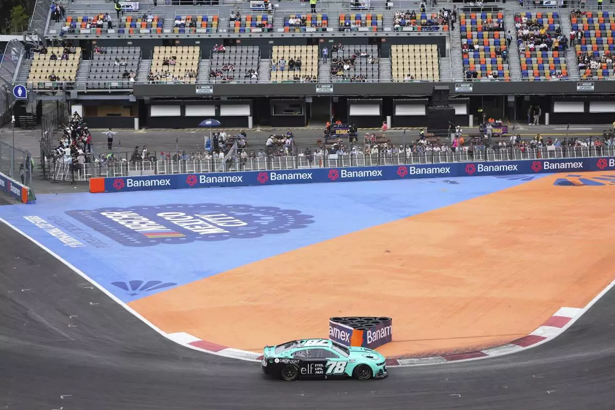 Daniel Suarez drives during a qualifying session for the NASCAR Cup Series auto race at Hermanos Rodriguez race track in Mexico City, Saturday, June 14, 2025. (AP Photo/Fernando Llano)