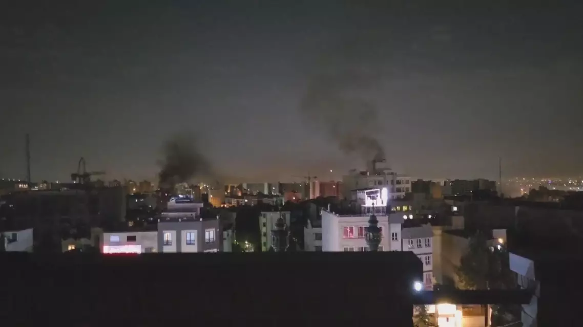 A reporter from China Central Television (CCTV) witnessed a drone attack in Tehran on Saturday night, describing it as accompanied by a powerful explosion and billowing smoke.