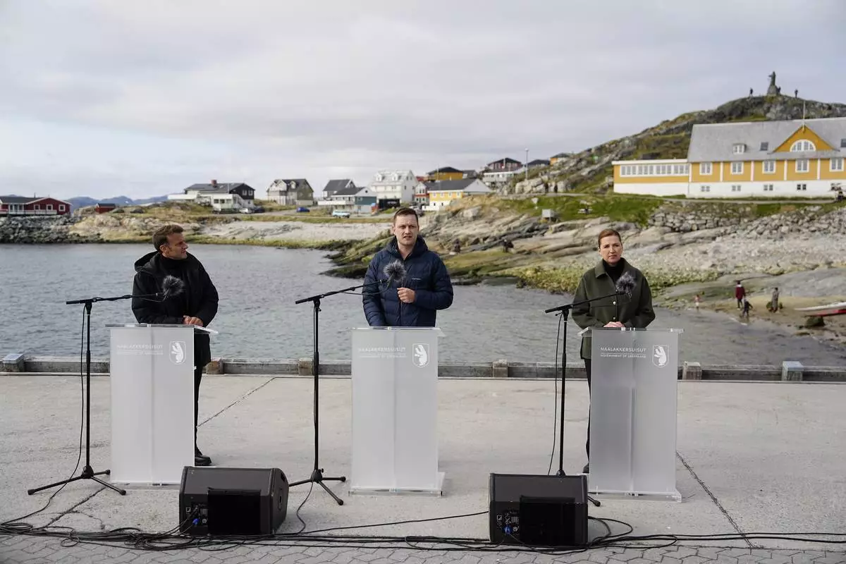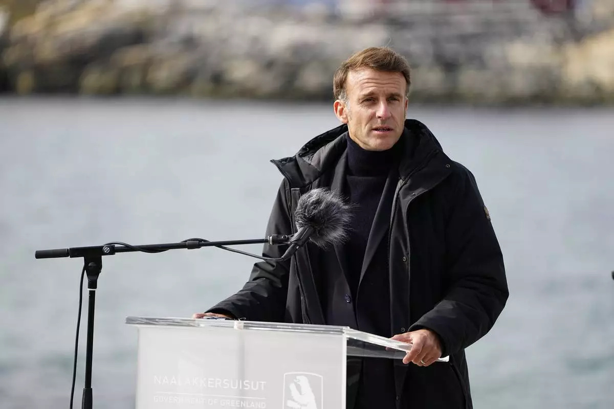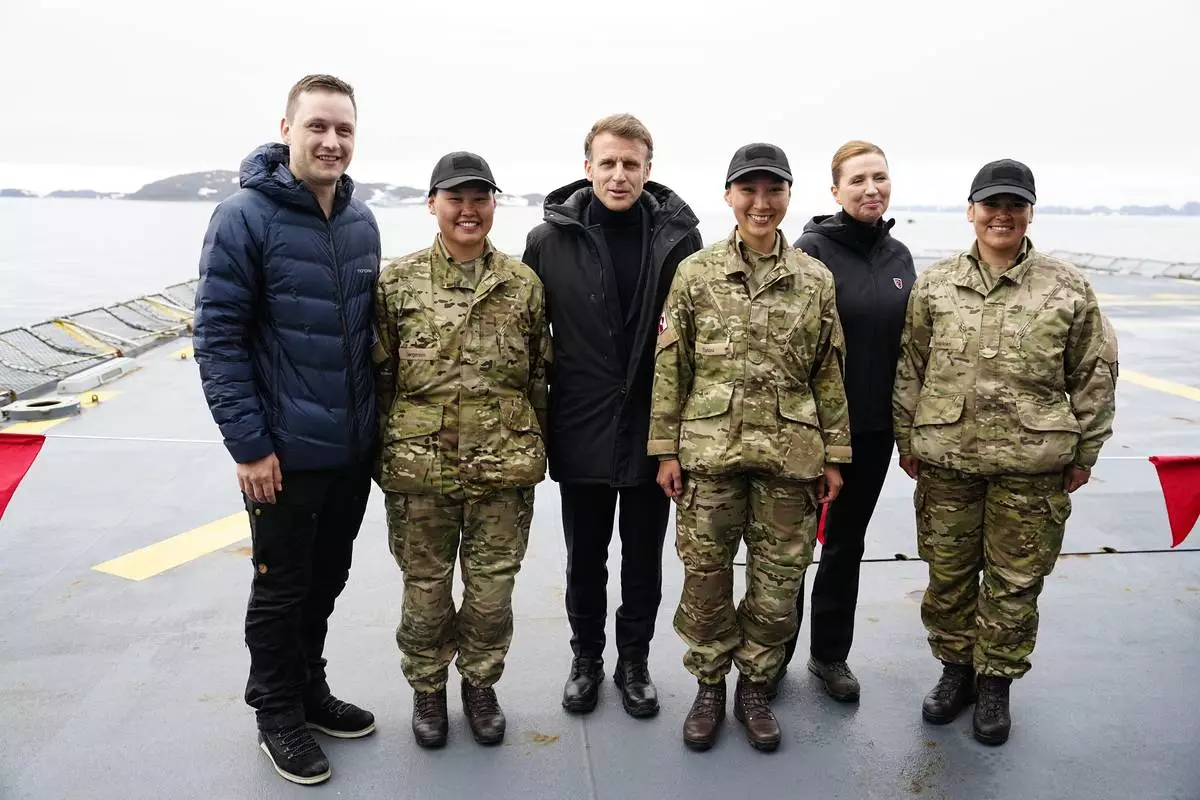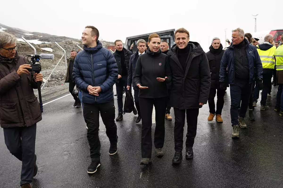 Macron was greeted in Nuuk, the territory's capital, by Danish Prime Minister Mette Frederiksen and Greenlandic Prime Minister Jens-Frederik Nielsen.