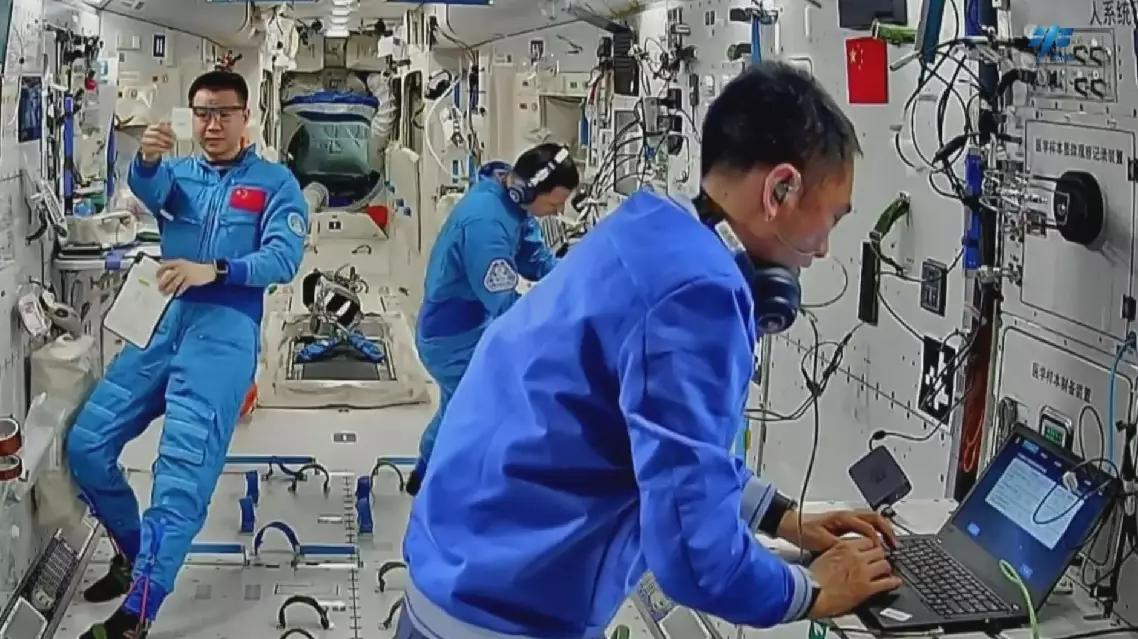 Astronauts Chen Dong, Chen Zhongrui, and Wang Jie, who were sent into space on April 25, carried out various medical tests and scientific experiments during the productive week, the agency said.