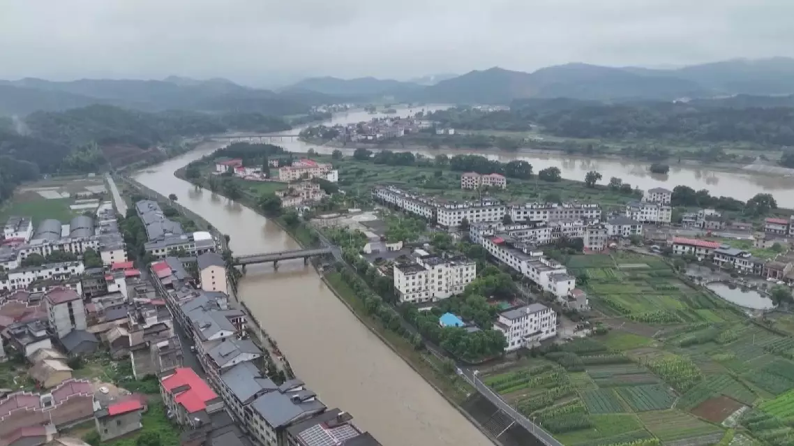 Affected by Wutip, the water level of the Fucai River in Hainan's Baisha Li Autonomous County, upstream of the Nandu River, exceeded the alarming level at around 09:00 on Saturday.