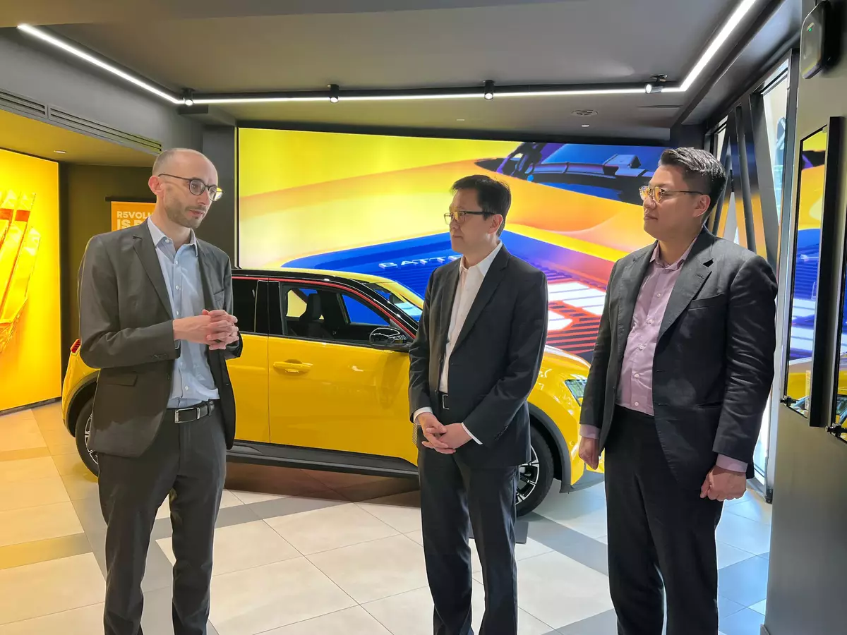 Professor Sun visited the showroom of Renault Group in Paris, France and met with the group's management yesterday (June 14, Paris time). BeyonCa, a premium electric vehicle enterprise backed by France's Renault Group and China's Dongfeng Motor Corporation, was established in Hong Kong in 2021 with its international headquarters being set up at the Hong Kong Science Park. Professor Sun was briefed on the latest development and planning of the group and its brands as well as its various innovative businesses. Both sides also explored ways to deepen collaboration.
