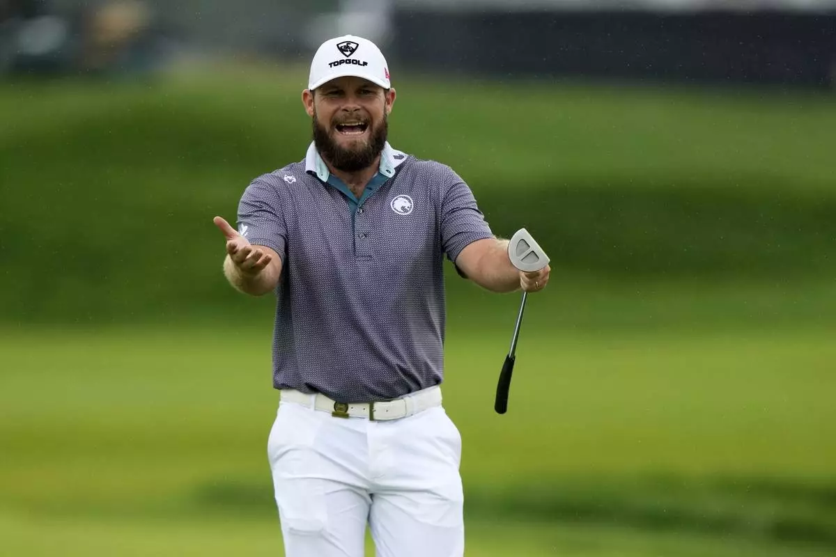 OAKMONT, Pa. (AP) — Tyrrell Hatton, in the mix in the final round of a major for the first time in the late Sunday gloom at the U.S. Open, watched his tee shot on the 17th hole drift to the right and exhaled.