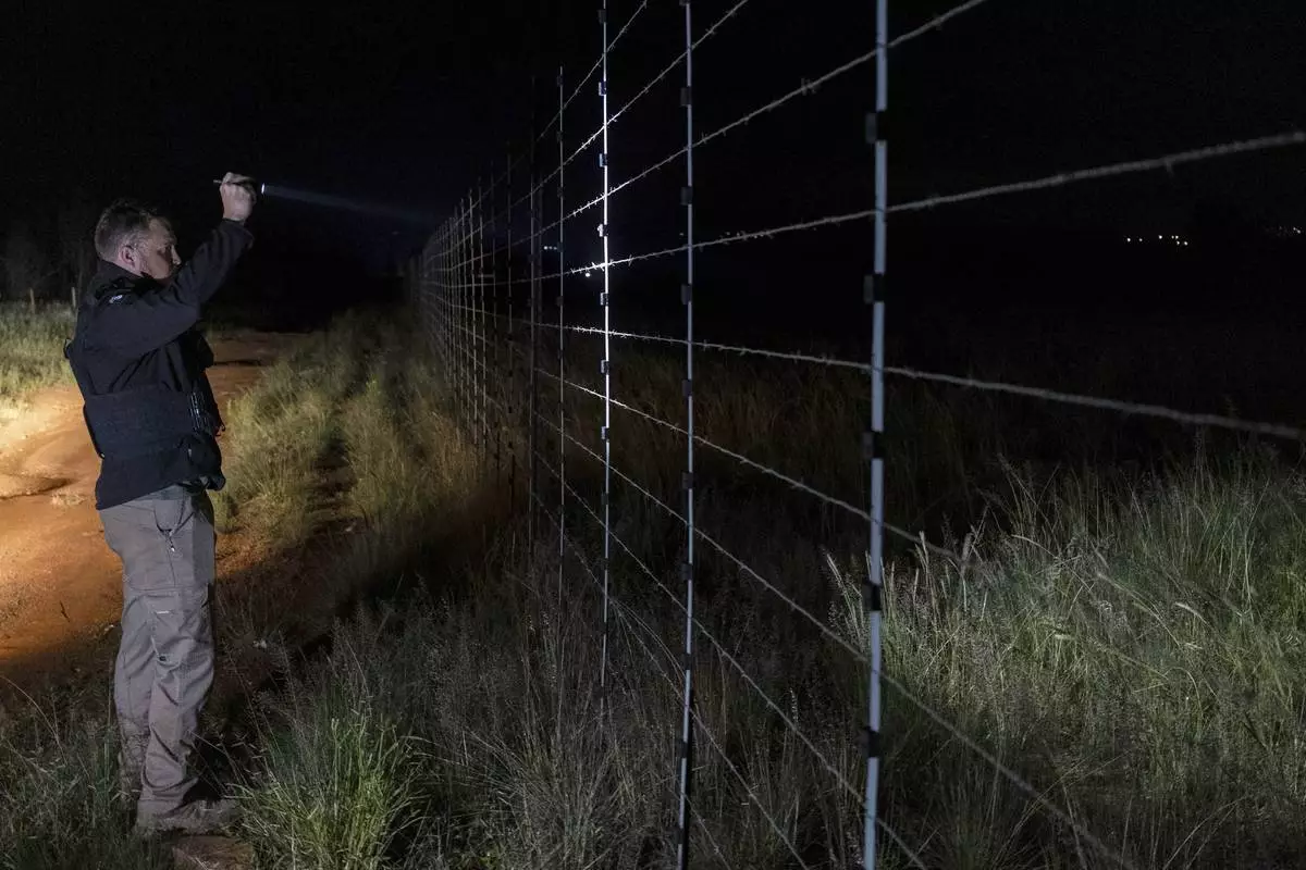 Dewet Ungerer, an AfriForum coordinator, patrols a road during a neighborhood and farm security watch operation in Bashewa area, near Pretoria, South Africa, March 27, 2025. (AP Photo/Alet Pretorius)