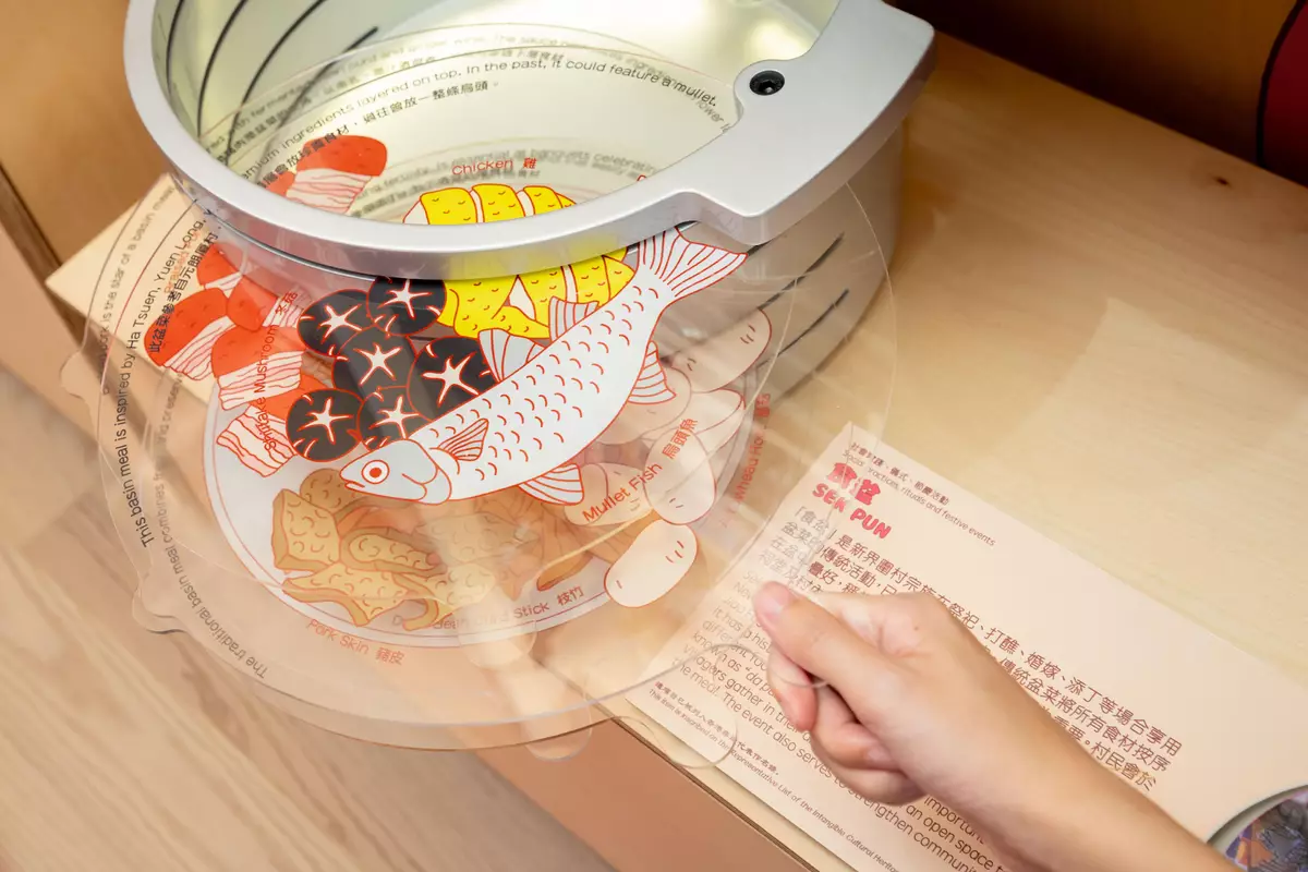 Apart from exhibits and videos related to ICH, the ICH Mobile Centre features an interactive "Hong Kong ICH Festival Map", leading the public to explore the festivals across all 18 districts and cultural traditions, and add the events to their mobile phone calendars. Through interactive devices "TungShing (the book of everything) Calendar" and "ICH 123", the public can browse local festivals to learn details of related ICH items and the different ways of safeguarding and passing on ICH. The public can also make and keep their own Spring Ox Picture Souvenir Card by participating in the stamping activity on the ICH Mobile Centre.