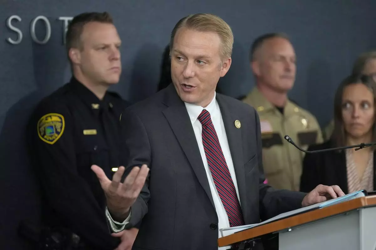 Bureau of Criminal Apprehension Supervisor Drew Evans speaks during a news conference at the Hennepin County Attorney’s Office in Minneapolis, Monday, June 16, 2025. (AP Photo/George Walker IV)