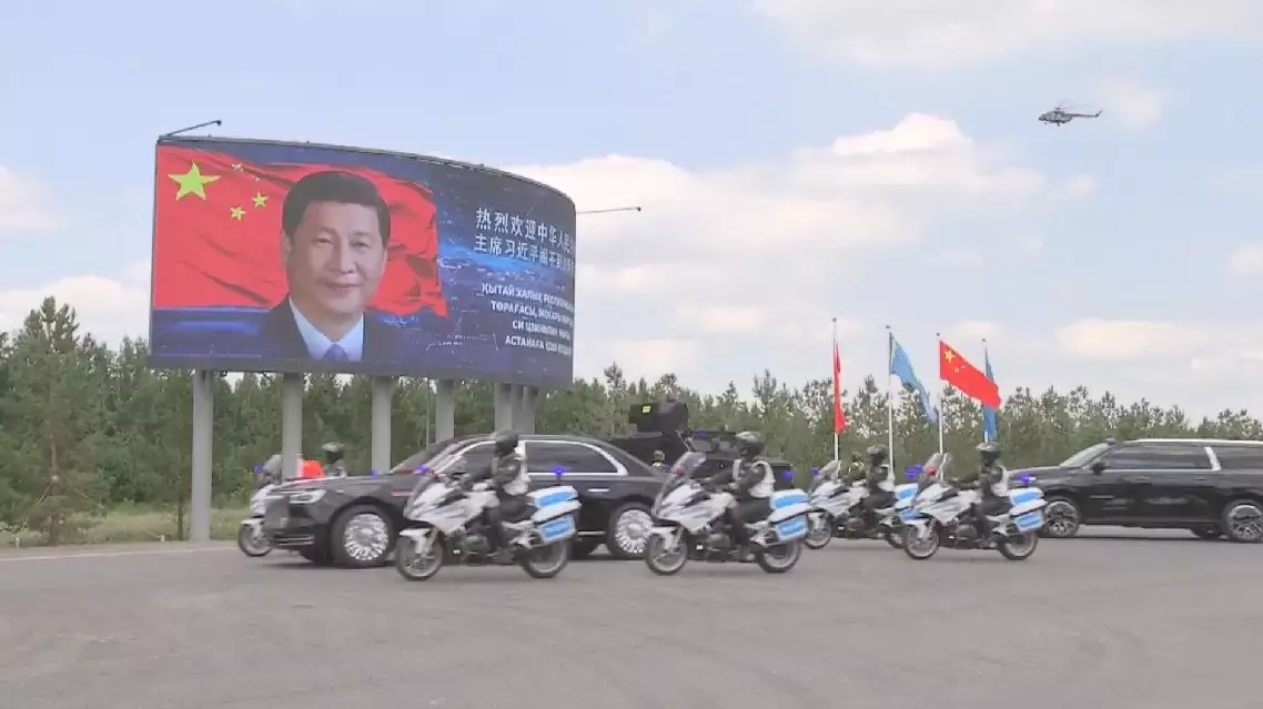 The Kazakh side also sent helicopters to escort the Chinese president's motorcade from the air.