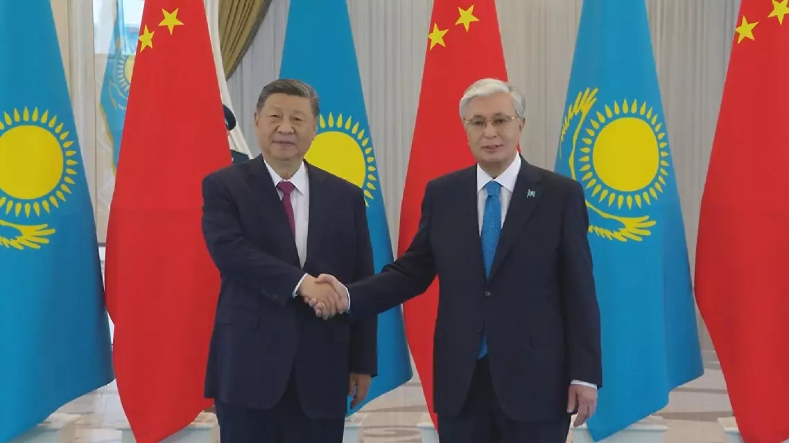 Kazakh President Kassym-Jomart Tokayev on Monday greeted visiting Chinese President Xi Jinping at the Ak Orda Presidential Palace in Astana.