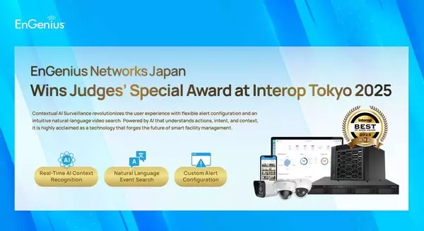 COSTA MESA, Calif., June 17, 2025 /PRNewswire/ -- At "Interop Tokyo 2025," one of the world's largest ICT exhibitions held June 11–13 at Makuhari Messe, EnGenius Networks Japan's cutting-edge solution, Contextual AI Surveillance, was honored with the Best of Show Award: Judges' Special Award. Among the three finalists in the Gadget category, EnGenius was the only company to receive this esteemed Judges' Special Award, reaffirming our leadership in AI-powered smart surveillance and cloud networking innovation.