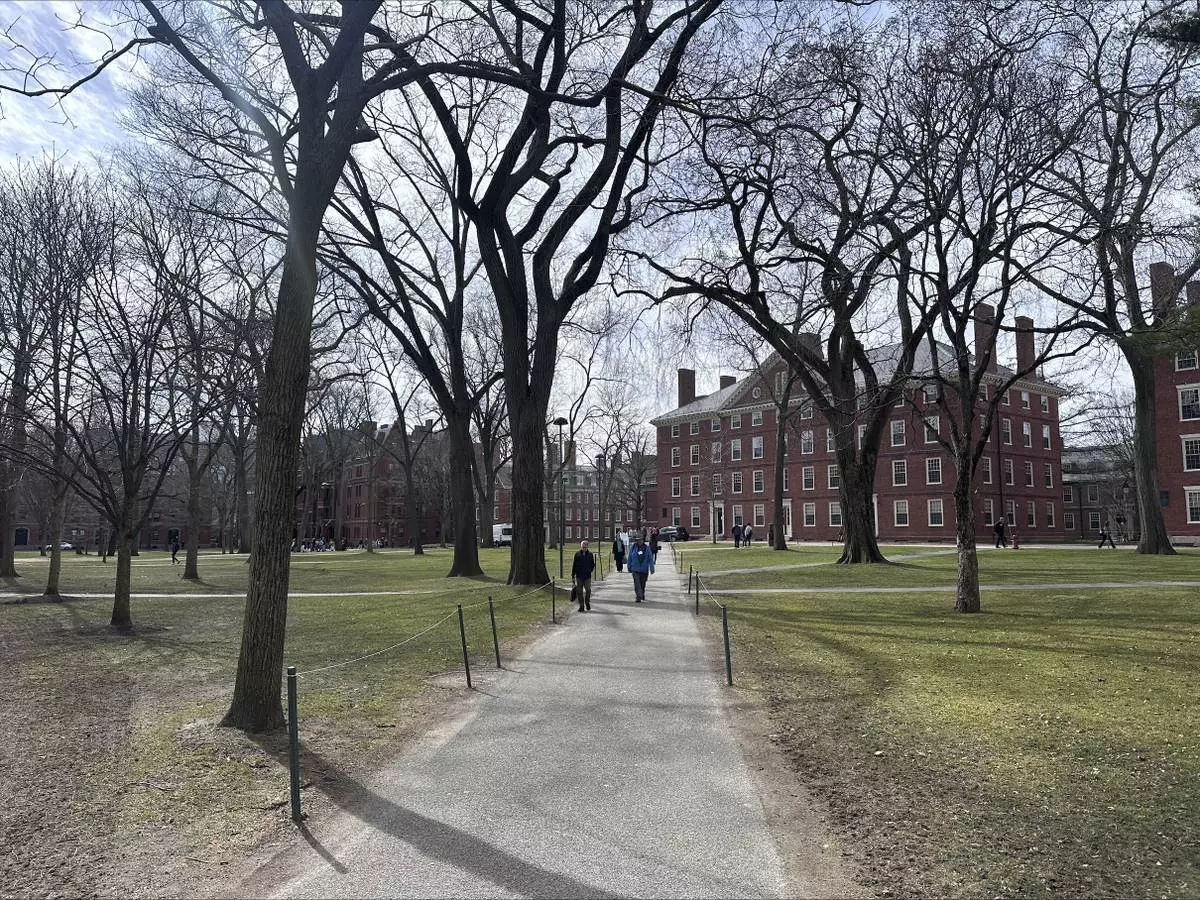 FILE - People walk through the campus of Harvard University in Cambridge, Mass., March 18, 2025. (AP Photos/Michael Casey, File)
