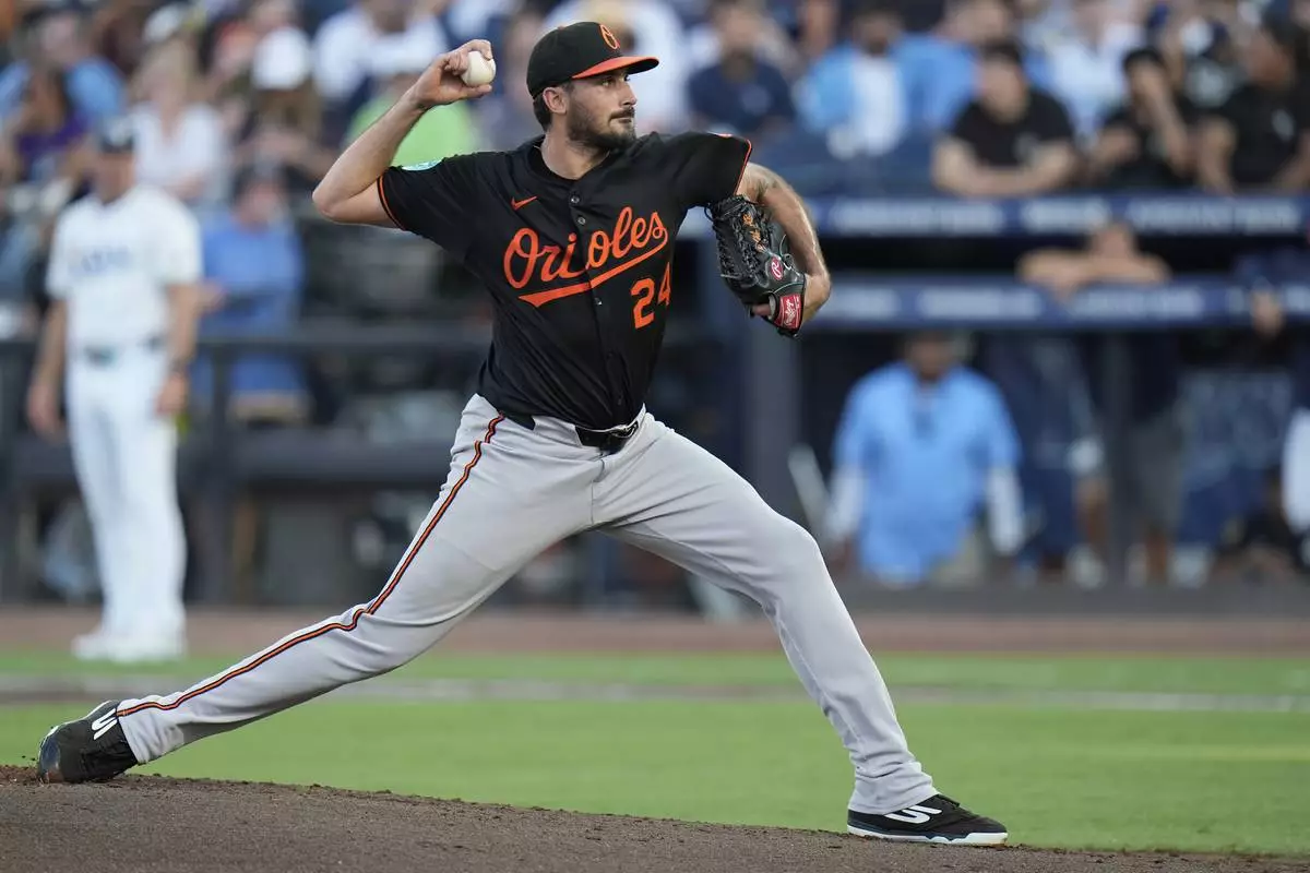 Baltimore Orioles' Zach Eflin pitches to the Tampa Bay Rays during the first inning of a baseball game Monday, June 16, 2025, in Tampa, Fla. (AP Photo/Chris O'Meara)