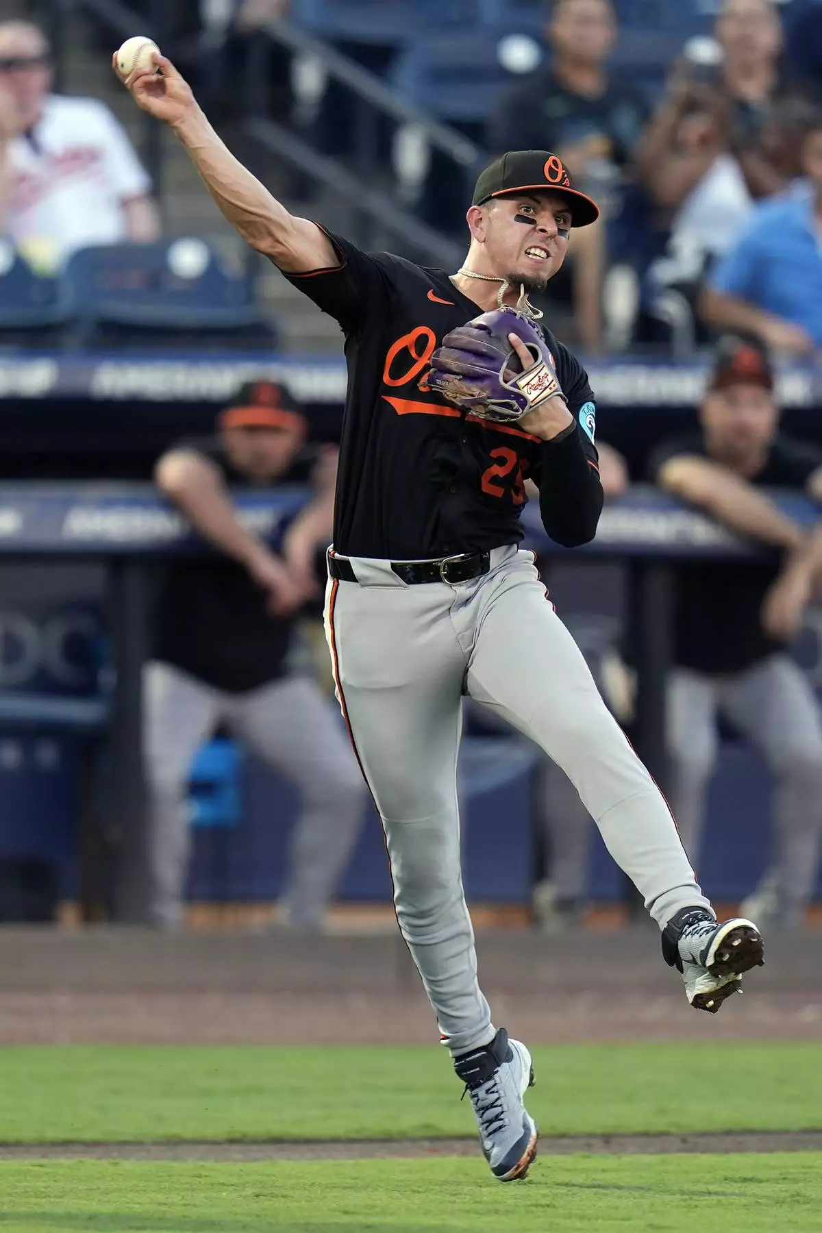 Baltimore Orioles third base Ramón Urías throws out Tampa Bay Rays' Josh Lowe on a close play during the second inning of a baseball game Monday, June 16, 2025, in Tampa, Fla. (AP Photo/Chris O'Meara)
