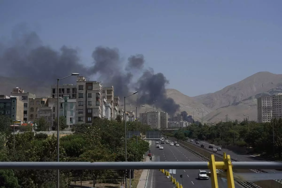 Smoke rises from an oil storage facility after it appeared to have been struck by an Israeli strike on Saturday, in Tehran, Iran, Monday, June 16, 2025. (AP Photo/Vahid Salemi)