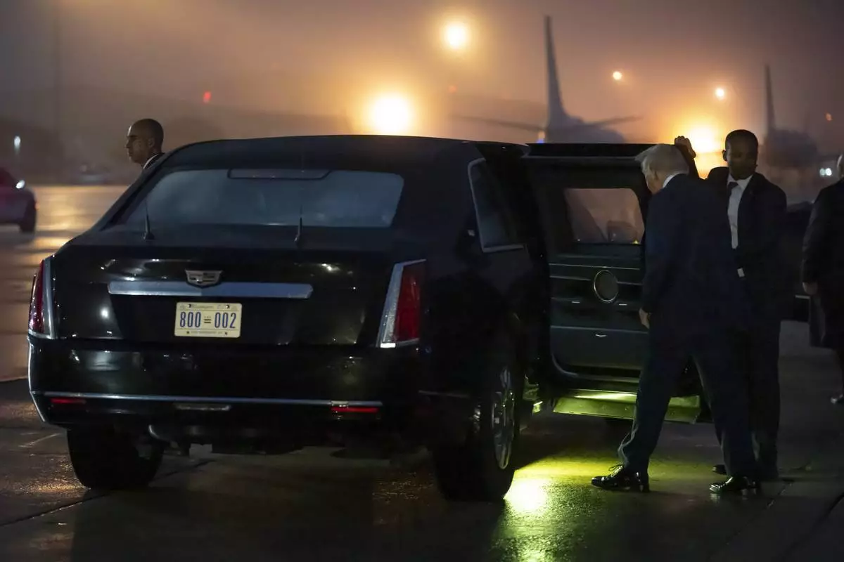 President Donald Trump boards his limousine at Joint Base Andrews, Md., on Tuesday, June 17, 2025, after returning from Calgary, Canada and the G7 Summit. (AP Photo/Mark Schiefelbein)