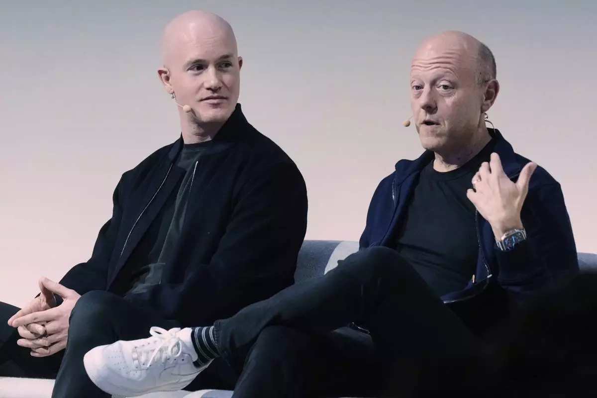 Brian Armstrong, left, Co-founder and CEO of Coinbase, and Jeremy Allaire, Co-Founder, Chairman and CEO of Circle, participate in the State of Crypto Summit, in New York, Thursday, June 12, 2025. (AP Photo/Richard Drew)