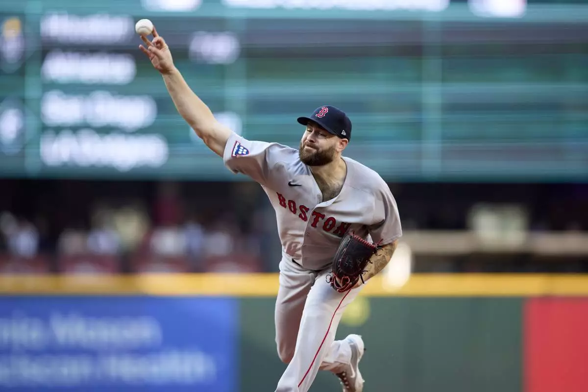 Boston Red Sox starting pitcher Lucas Giolito throws against the Seattle Mariners during the first inning of a baseball game Monday, June 16, 2025, in Seattle. (AP Photo/John Froschauer)