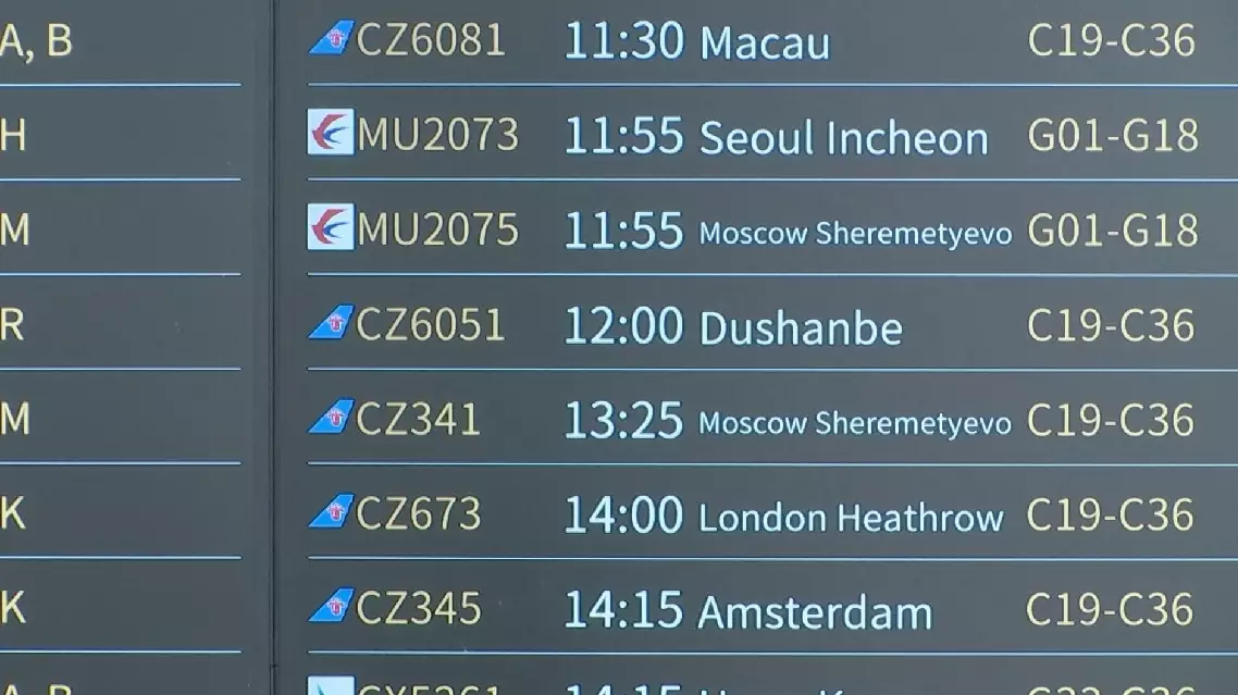 At 12:00 on Monday, flight CZ6051, carrying 173 passengers, departed Beijing Daxing International Airport for Dushanbe, marking the first direct flight between the two cities and shortening travel time to 6-7 hours.