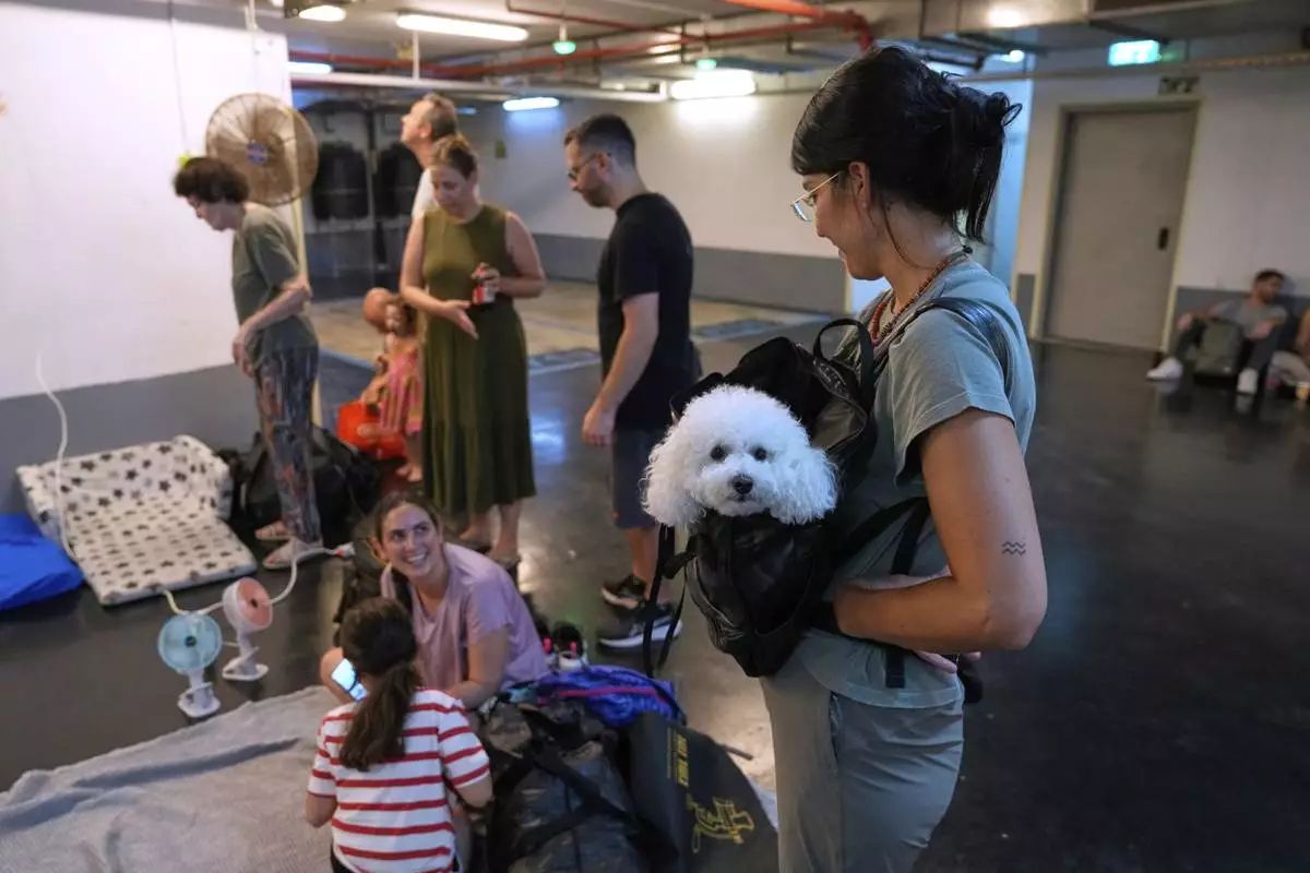Israelis get ready to take shelter in a parking garage in prevention of a missile attack from Iran, in Tel Aviv, Israel, Monday, June 16, 2025. (AP Photo/Baz Ratner)
