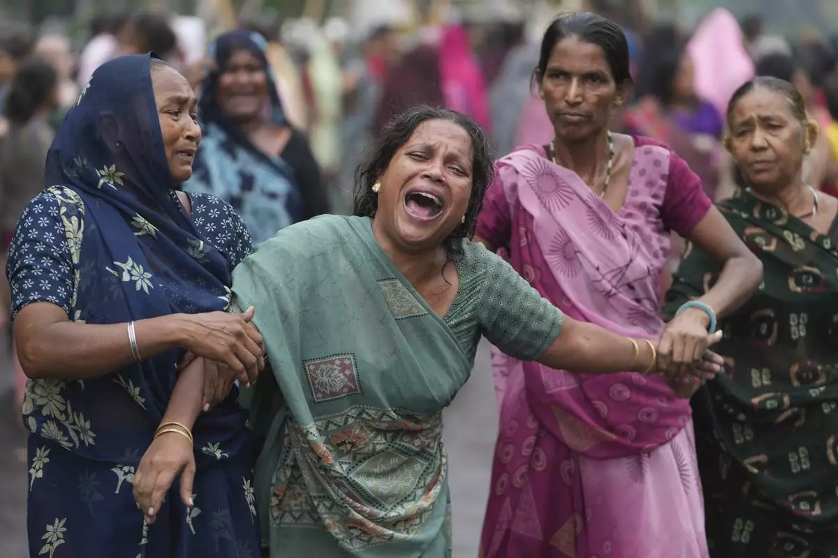 Relatives of Akash Patni, victim of the Air India plane crash, grieve during his funeral procession in Ahmedabad, India, Tuesday, June 17, 2025. (AP Photo/Ajit Solanki)