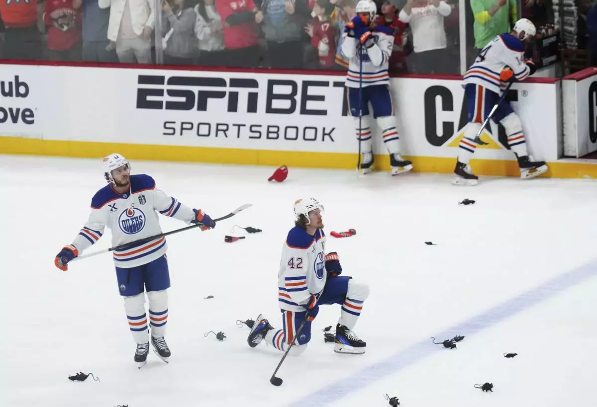 More rats were part of the victory celebration when the clock hit zeroes. Panthers players mobbed in the corner, while the Oilers watched in dismay.