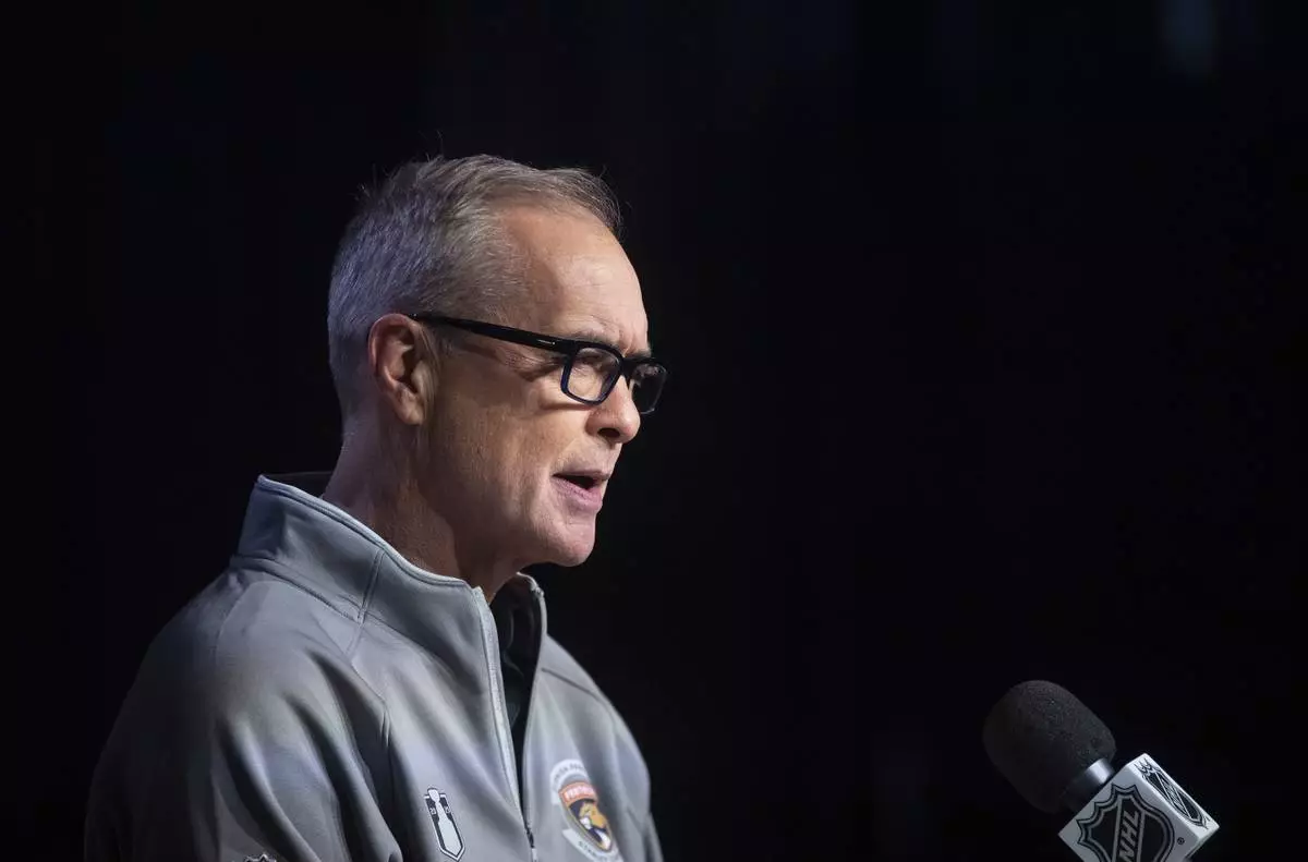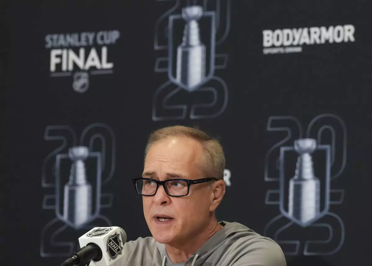 Florida Panthers head coach Paul Maurice speaks to the media during a news conference at the NHL hockey Stanley Cup Finals in Fort Lauderdale, Fla., Tuesday, June 10, 2025. (Nathan Denette/The Canadian Press via AP)