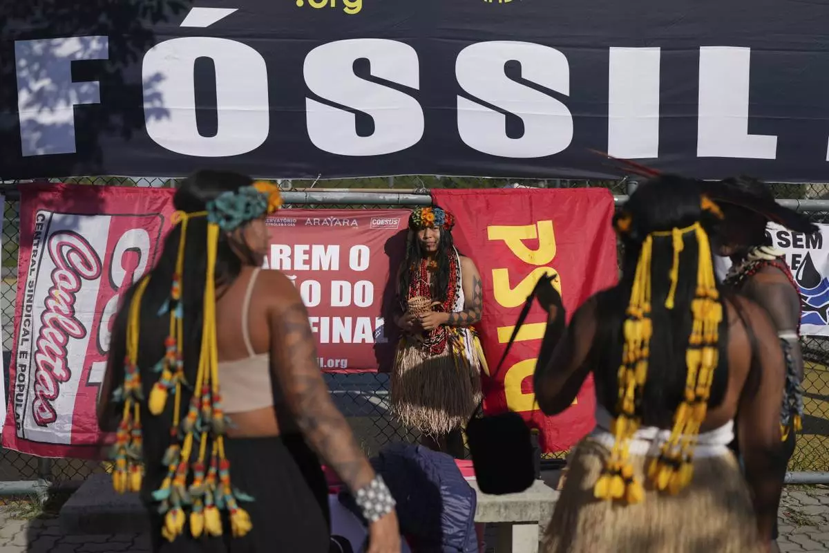 The event came months before Brazil is to host the U.N.’s first climate talks held in the Amazon. The protesters outside Tuesday's venue warned of potential risks that oil drilling poses to sensitive ecosystems and Indigenous communities in the Amazon.