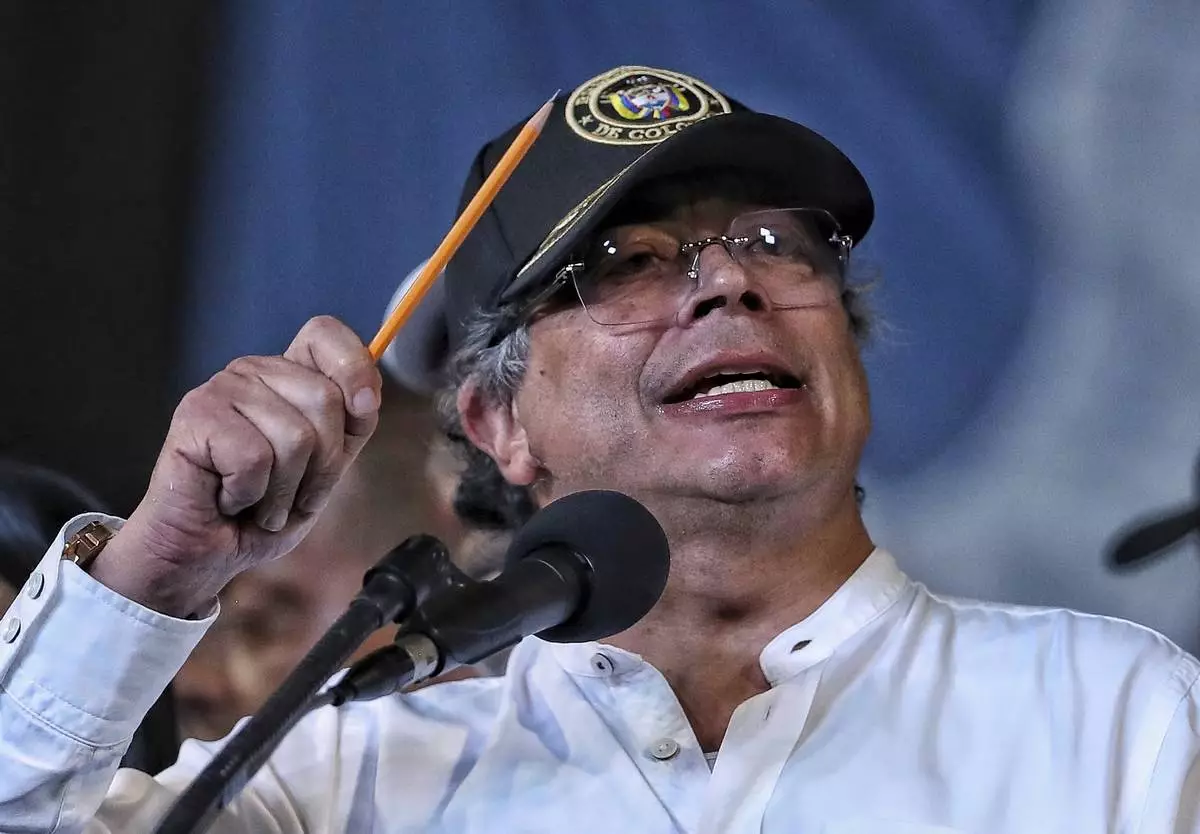 Colombia's President Gustavo Petro speaks at a rally to garner support for a referendum on labor reform, in Cali, Colombia, Wednesday, June 11, 2025. (AP Photo/Santiago Saldarriaga)