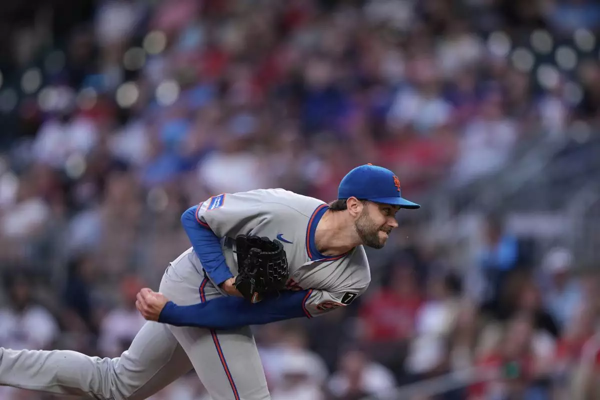 New York Mets pitcher David Peterson (23) delivers in the first inning of a baseball game against the Atlanta Braves, Tuesday, June 17, 2025, in Atlanta. (AP Photo/Brynn Anderson)