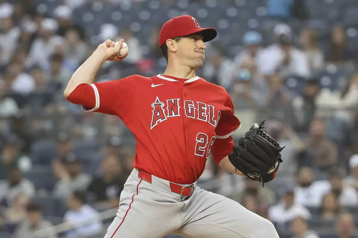 Los Angeles Angels' Kyle Hendricks pitches during the first inning of a baseball game against the New York Yankees, Tuesday, June 17, 2025, in New York. (AP Photo/Pamela Smith)