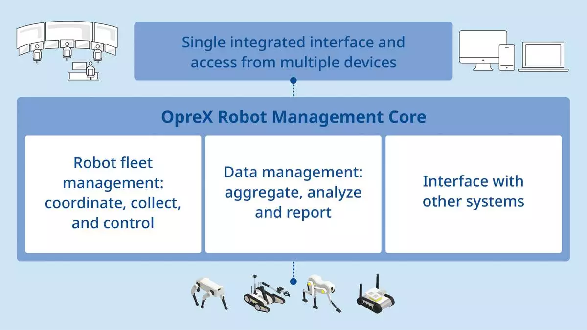 OpreX Robot Management Core is a key product in Yokogawa’s robot solutions. The software helps customers maintain their facilities in a safer and more efficient manner by integrating the management of various types of robots that perform plant maintenance tasks conventionally carried out by humans. When connected to a plant’s control and safety systems, the data acquired can be used to issue instructions to robots, thus enabling the first step to be taken toward autonomous plant operations. The addition of Shell’s ORE technology will significantly increase the number of use cases available to customers through OpreX Robot Management Core.
