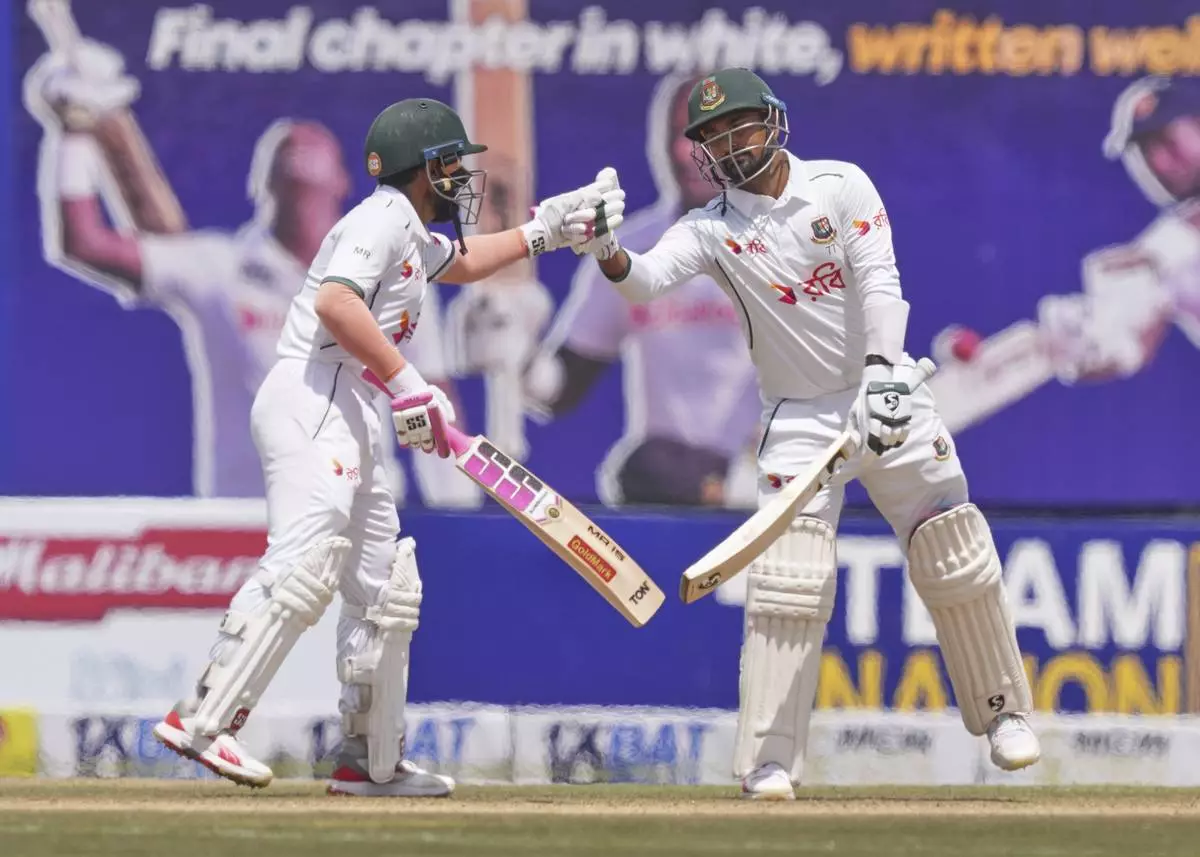 The first was a record-breaking 264-run partnership with captain Najmul Hossain Shanto, who was in sublime touch during his innings of 148. Shanto, though, fell against the run of play — lured into a false stroke by Asitha Fernando and holing out to mid-off, where Angelo Mathews took a sharp catch.