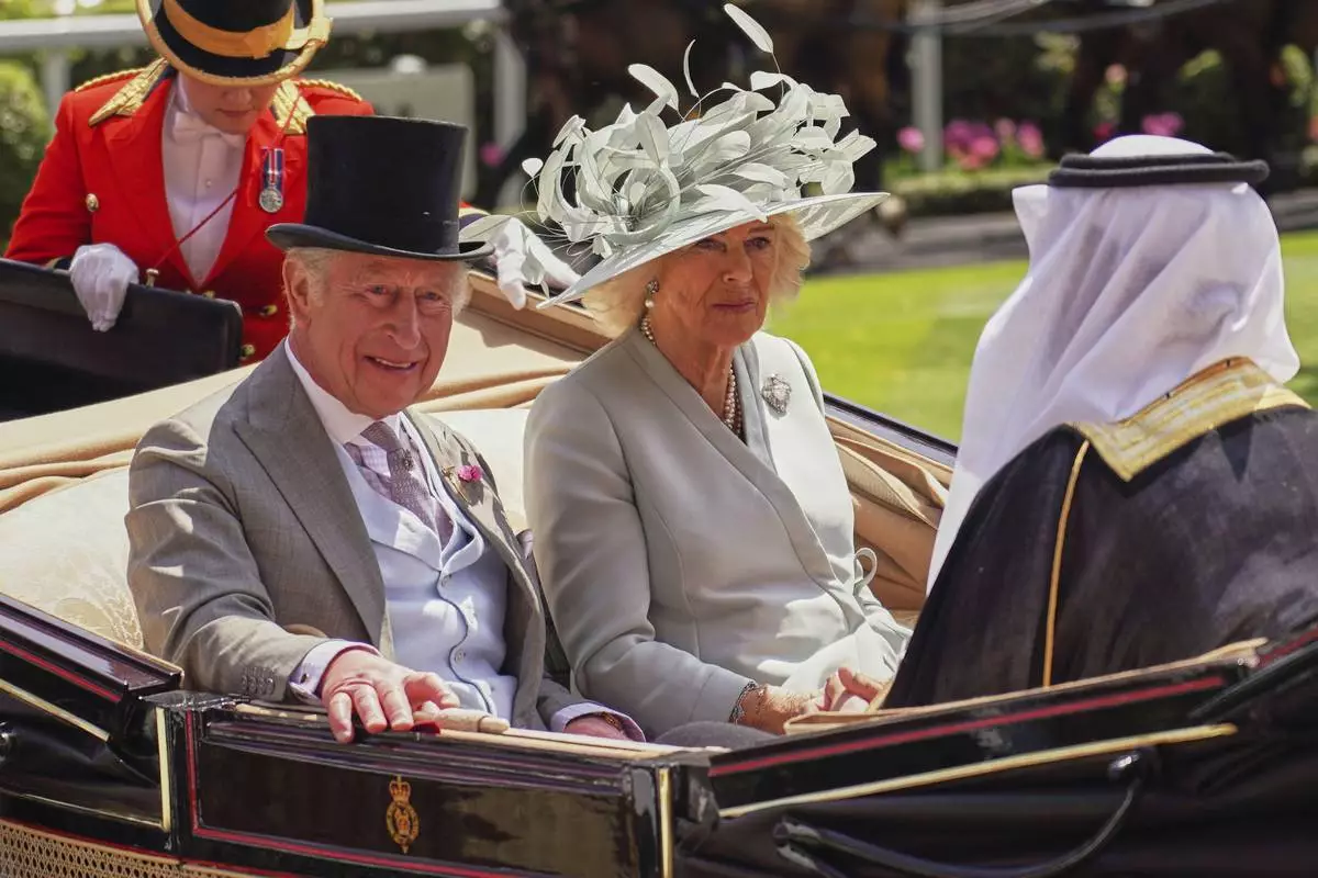 Britain's King Charles and Queen Camilla arrive by carriage into the Parade Ring on the second day of the Royal Ascot horse race meeting at Ascot, England, Wednesday June 18, 2025. (AP Photo/Alberto Pezzali) (AP Photo/Alberto Pezzali)
