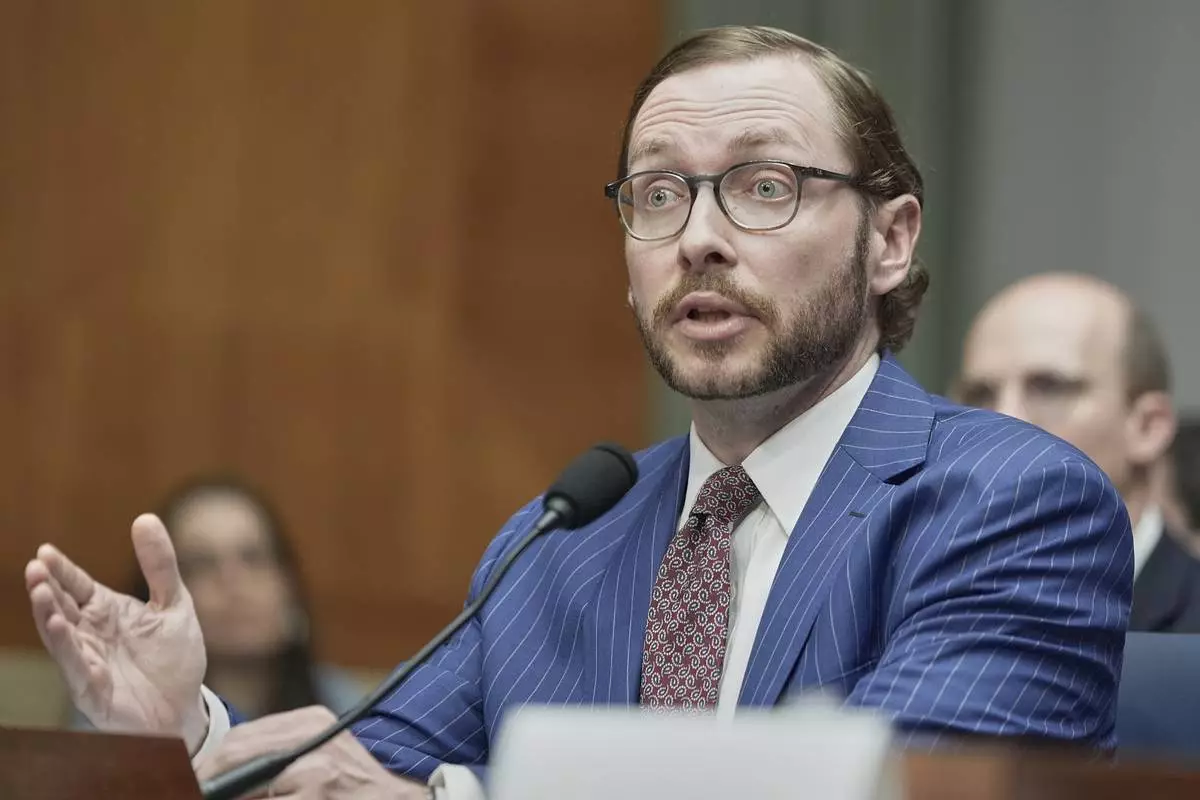 Jonathan Berry, nominated to be Solicitor, Department of Labor, testifies during a Senate Health, Education, Labor, and Pensions (HELP) Committee hearing, Wednesday, June. 18, 2025, on Capitol Hill in Washington. (AP Photo/Mariam Zuhaib)