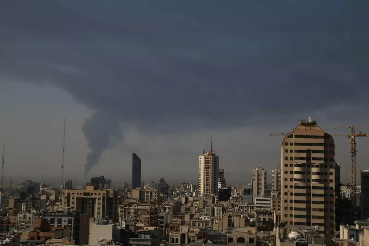 Huge smoke rises up from an oil facility facility after it appeared to have been hit by an Israeli strike Saturday, in southern Tehran, Iran, Sunday, June 15, 2025. (AP Photo)