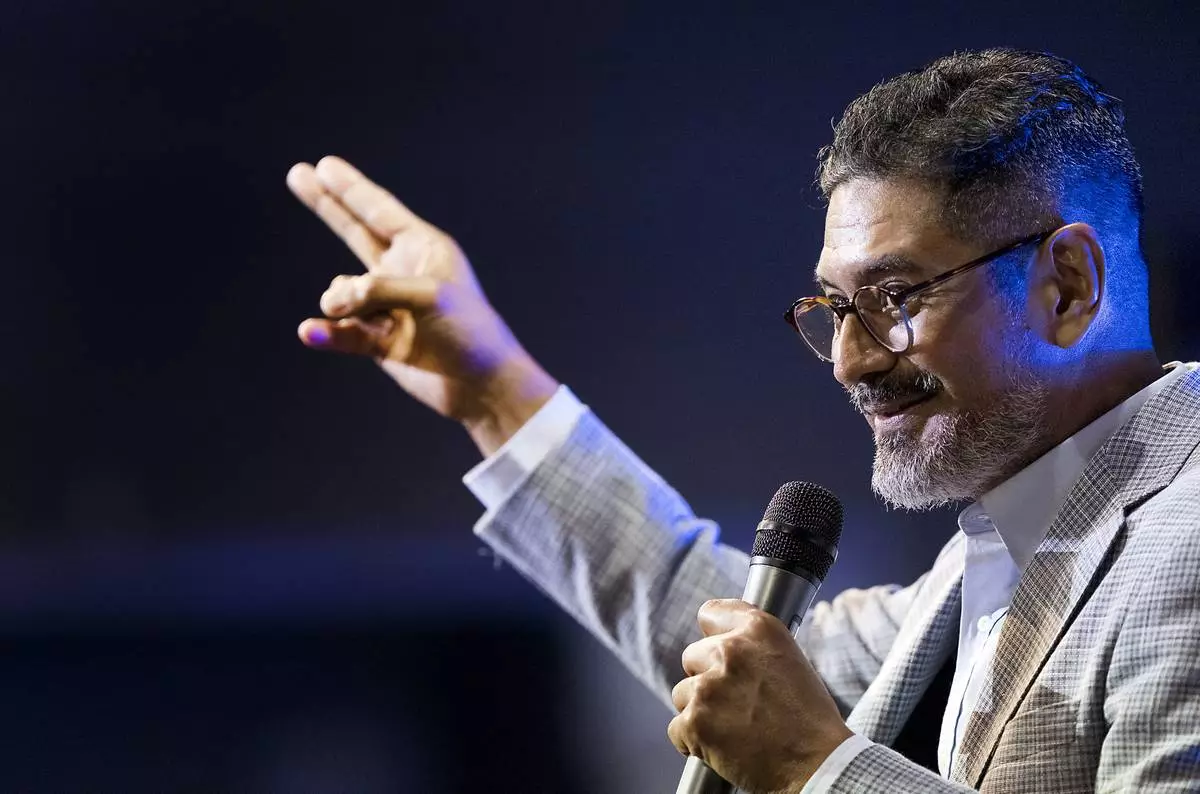 José Luis Orozco, a pastor from Nicaragua, ministers to members of the Oasis Church, in Taylor, Texas, June 15, 2025. (AP Photo/Rodolfo Gonzalez)