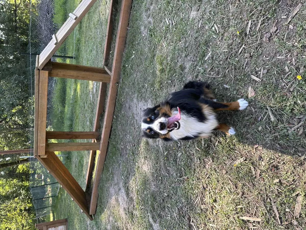 Cookie, an eight-year-old German shepherd mix, rests off-leash in a yard in Waitsfield, Vt., on Saturday, June 14, 2025. (AP Photo/Carolyn Lessard)