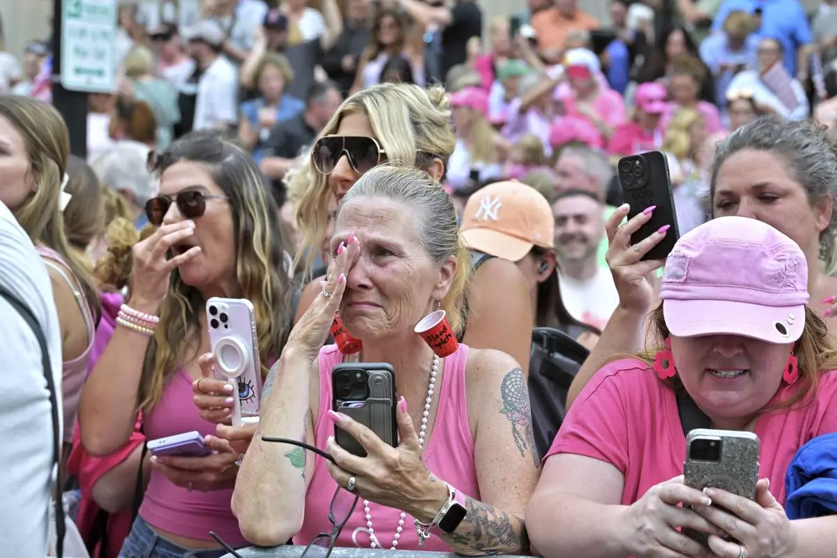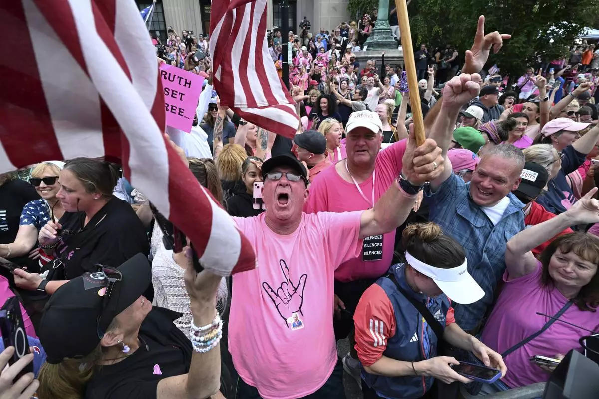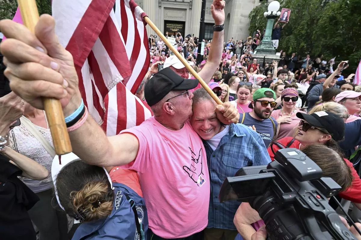 Supporters of Karen Read, react as she leaves the courthouse at the start of the third day of jury deliberations in Read's trial at Norfolk Superior Court, Wednesday, June 18, 2025, in Dedham, Mass. (AP Photo/Josh Reynolds)