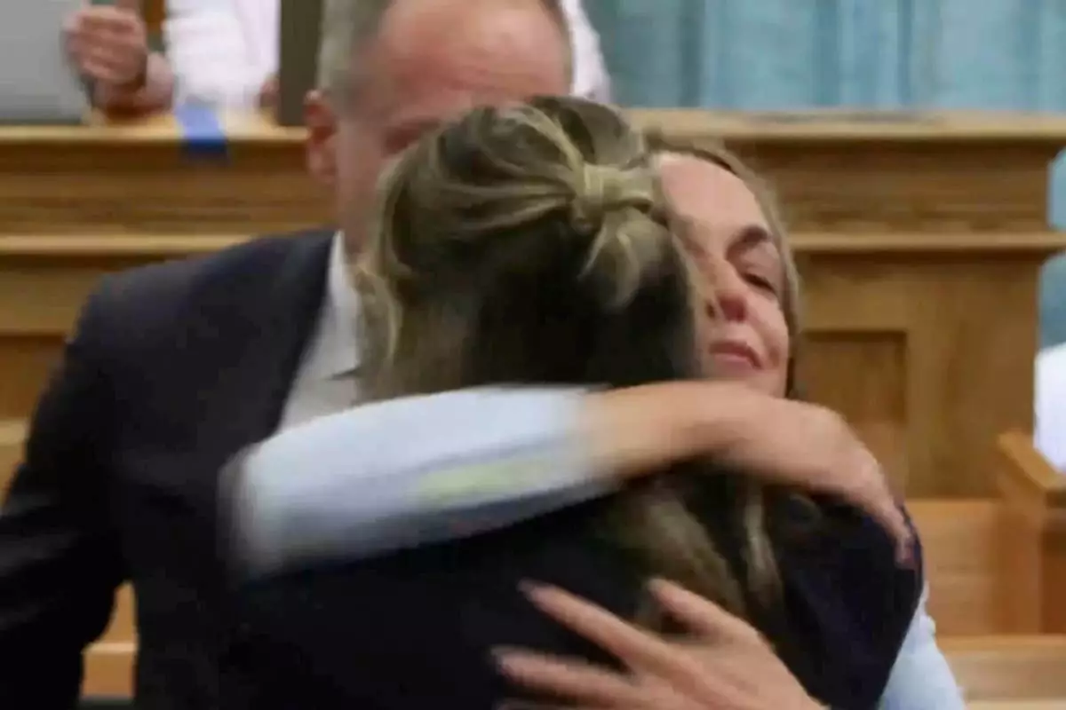 Read hugs her parents Janet and William after the verdict is read in Norfolk Superior Court, Wednesday, June 18, 2025, in Dedham, Mass. (Greg Derr/The Patriot Ledger via AP, Pool)