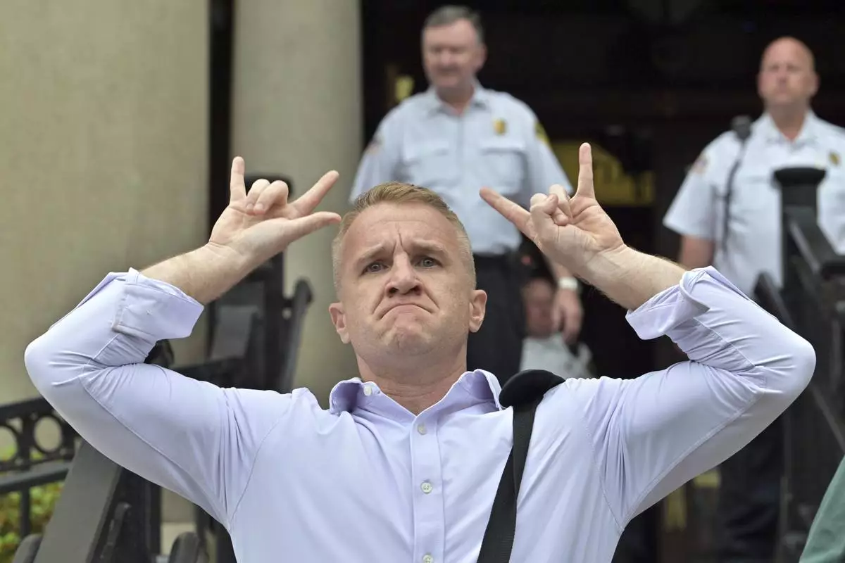 Blogger Aidan Kearney leaves the courthouse after Karen Read was found not guilty of second-degree murder on Wednesday, June 18, 2025, in Dedham, Mass. (AP Photo/Josh Reynolds)