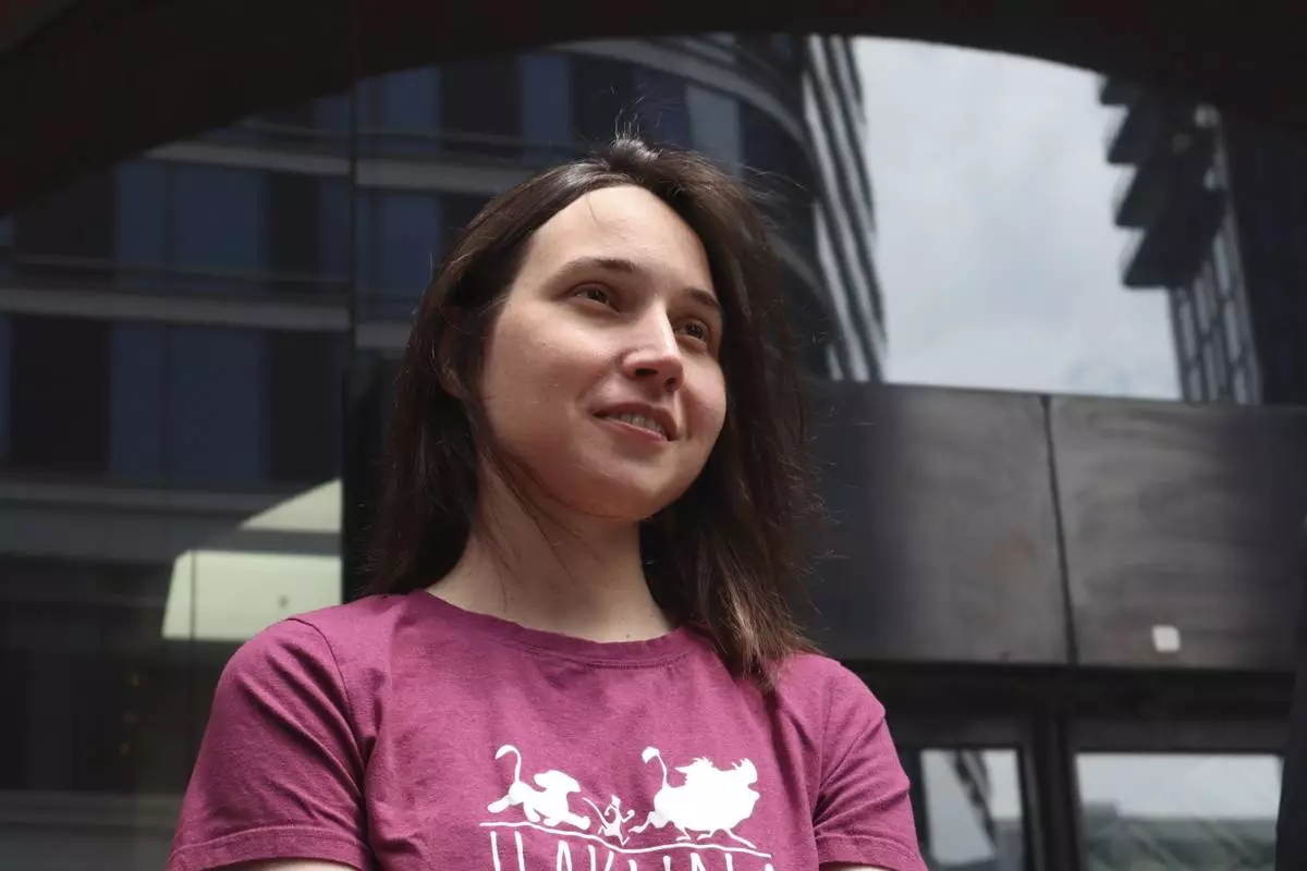 Harvard University researcher Kseniia Petrova, 30, departs the John Joseph Moakley United States Courthouse after being released on bail from federal custody on Thursday, June 12, 2025, in Boston. (AP Photo/Leah Willingham)