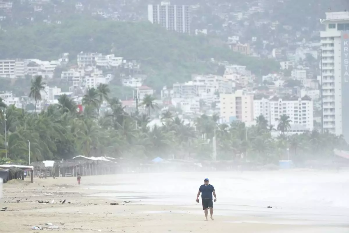 Tourists stroll along the beach shore before the arrival of Hurricane Erick, in Acapulco, Mexico, Wednesday, June 18, 2025. (AP Photo/Fernando Llano)
