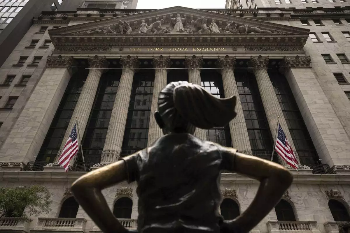 The "Fearless Girl" statue stands in front of the New York Stock Exchange, Wednesday, June 18, 2025, in New York. (AP Photo/Yuki Iwamura)