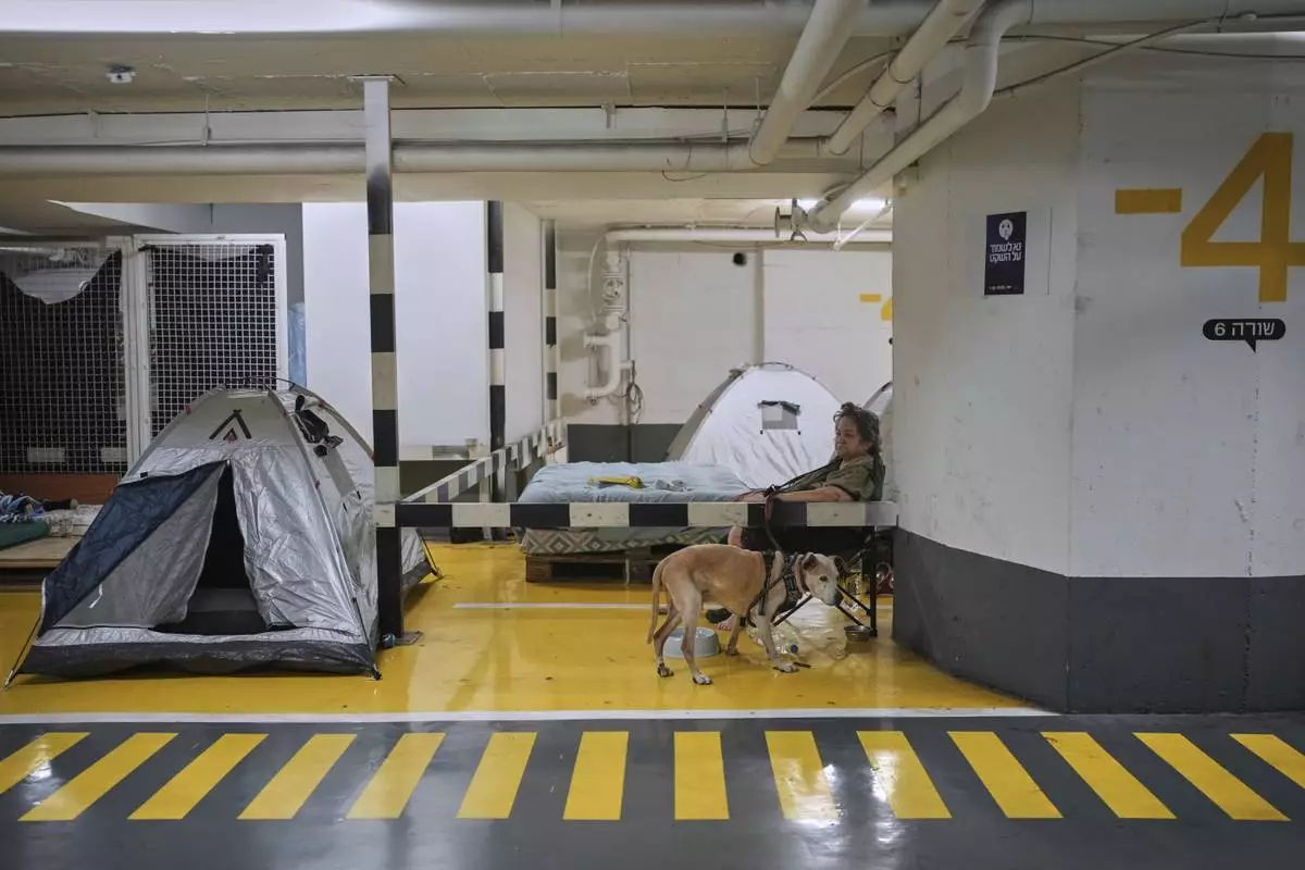 People take shelter in a parking garage as a precaution against possible Iran missile attacks, in Tel Aviv, Israel, Wednesday, June 18, 2025. (AP Photo/Ohad Zwigenberg)