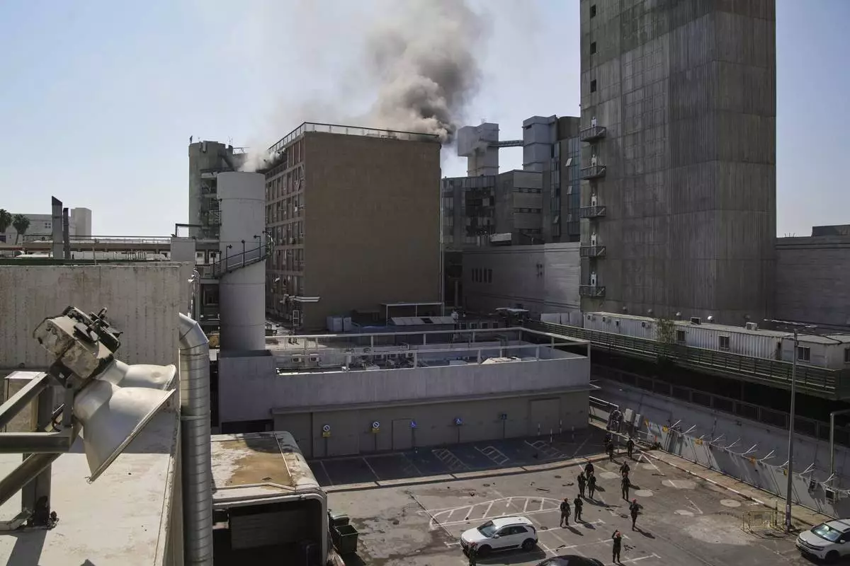 Black smoke rose from the Soroka Medical Center in the southern city of Beersheba as emergency teams evacuated patients.